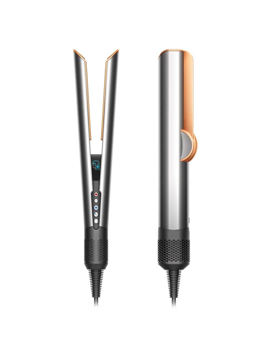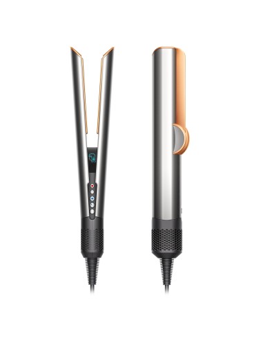 Dyson Airstrait. Tipo: Plancha de pelo, Tecnología: Vapor, Utilizar con: Cabello seco/mojado. Color del producto: Cobre, Níquel. Longitud del cable: 2,72 m, Tipo de visualizador: LCD. Potencia: 1600 W, Fuente de energía: Corriente alterna, Voltaje de entrada AC: 220 - 240 V. Ancho: 330 mm, Profundidad: 41 mm, Altura: 60 mm