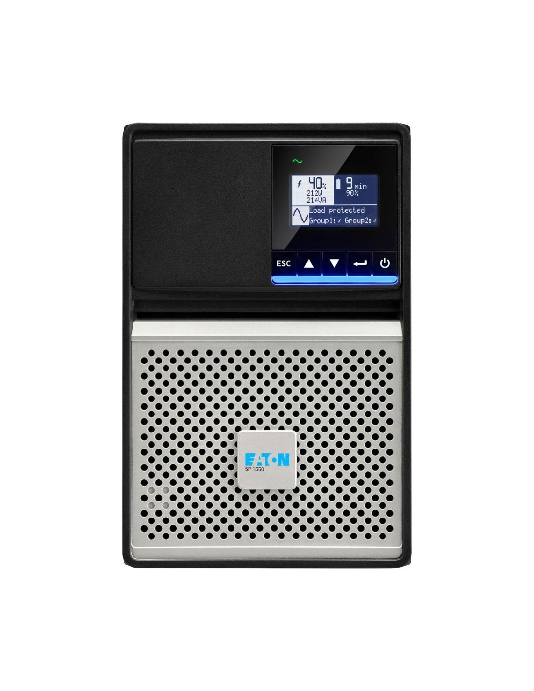 Eaton 5P Gen2. Topología UPS: Línea interactiva, Potencia de salida: 1350 W, Forma de onda: Seno. Tipo de salida AC: C13 acoplador, Conector: C14 acoplador, Cantidad de salidas AC: 8 salidas AC. Tecnología de batería: Plomo-ácido, Capacidad de la batería: 9 Ah, Voltaje de la pila: 12 V. Factor de forma: Torre, Color del producto: Negro, Plata, Tipo de visualizador: LCD. Certificados de conformidad: Compatibilidad electromagnética (EMC), Directiva de bajo voltaje (LVDˌ Low Voltage Directive),..., Certificación: IEC/EN 62040-1 IEC/EN 62040-2 IEC/EN 62040-3 UL 1778 CSA-C22.2 CE UKCA Cm Ukr KCC cTUVus BIS