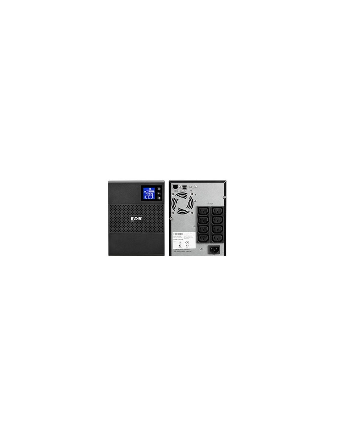 Eaton 5SC1500i. Capacidad de potencia de salida (VA): 1,5 kVA, Potencia de salida: 1050 W, Forma de onda: Seno. Tipo de salida AC: C13 acoplador, Conector: C14 acoplador, Cantidad de salidas AC: 8 salidas AC. Tiempo típico de respaldo a carga completa: 5 min, Tiempo típico de respaldo a media carga: 13 min. Factor de forma: Torre, Color del producto: Negro, Tipo de visualizador: LCD. Certificación: CE/GS/C-Tick