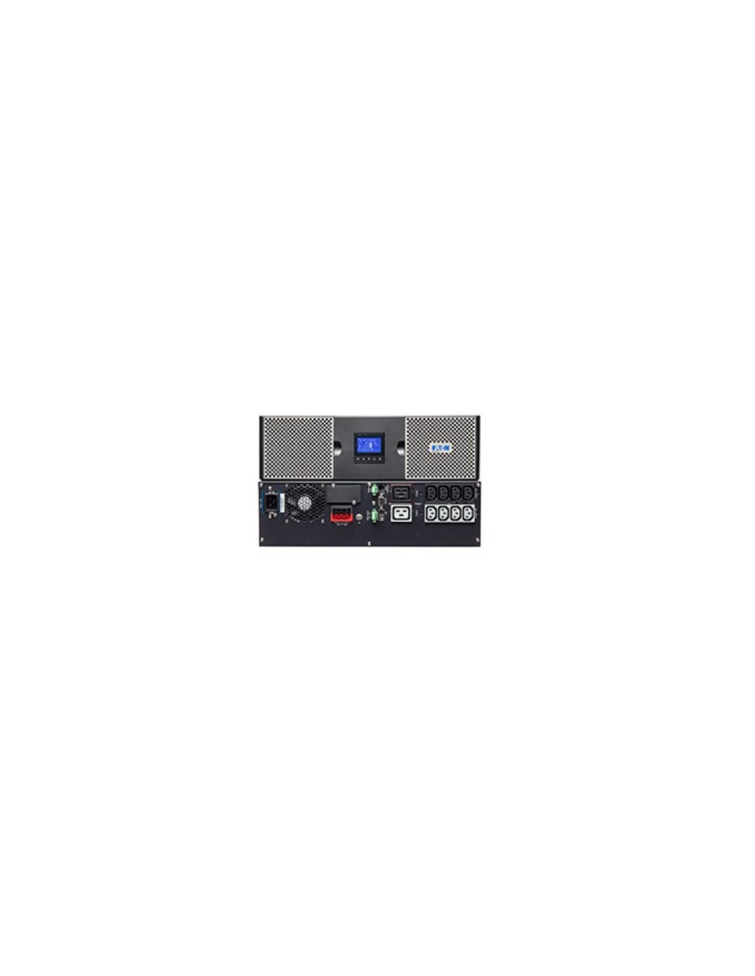 Eaton 9PX3000IRT3U. Topología UPS: Doble conversión (en línea), Capacidad de potencia de salida (VA): 3 kVA, Potencia de salida: 3000 W. Tipo de salida AC: C13 acoplador, C19 acoplador, Conector: C20 acoplador, Cantidad de salidas AC: 10 salidas AC. Tecnología de batería: Sealed Lead Acid (VRLA), Tiempo típico de respaldo a media carga: 9,5 min. Factor de forma: Montaje en rack/Torre o Montaje en bastidor/Torre, Color del producto: Negro, Capacidad del rack: 3U. Certificación: IEC/EN 62040-1, UL 1778, CSA 22.2, IEC/EN 62040 -2, FCC Class B, CISPR22 Class B, CE /CB report...