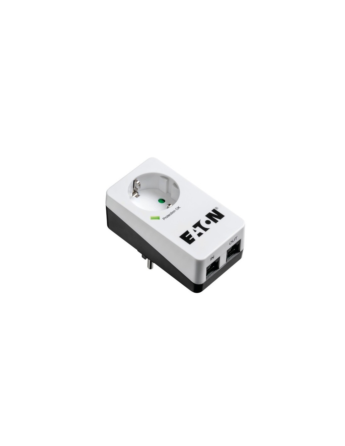 Eaton PB1TD. Cantidad de salidas AC: 1 salidas AC, Tipo de salida AC: Tipo F, Voltaje nominal de entrada: 220 - 250 V. Color del producto: Negro, Blanco, Tiempo de respuesta: 0,000001 ms. Peso: 124 g, Ancho: 55 mm, Profundidad: 98 mm. Certificación: CE / EAC / CM