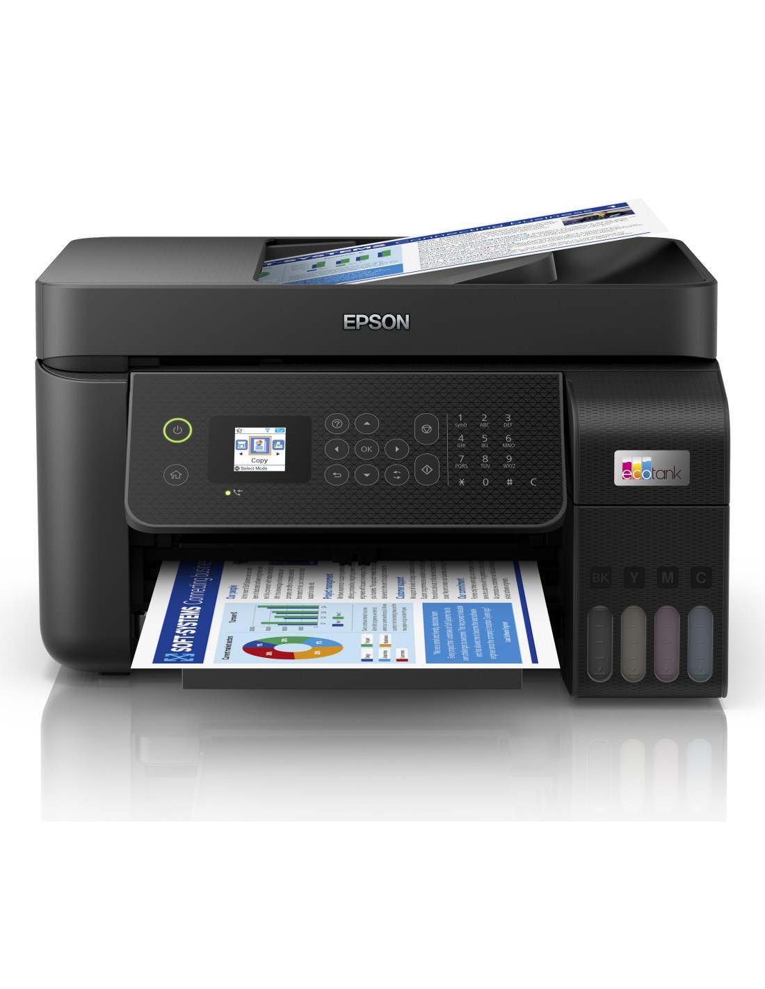 Epson EcoTank ET-4800. Tecnología de impresión: Inyección de tinta, Impresión: Impresión a color, Resolución máxima: 5760 x 1440 DPI, Velocidad de impresión (color, calidad normal, A4/US Carta): 15 ppm. Copiando: Copia a color. Escaneando: Escaneo a color, Resolución óptica de escáner: 1200 x 2400 DPI. Enviando por fax: Envío y recepción de faxes en blanco y negro. Funciones dúplex: Imprimir. Tamaño máximo de papel ISO A-series: A4. Wifi. Impresión directa. Color del producto: Negro