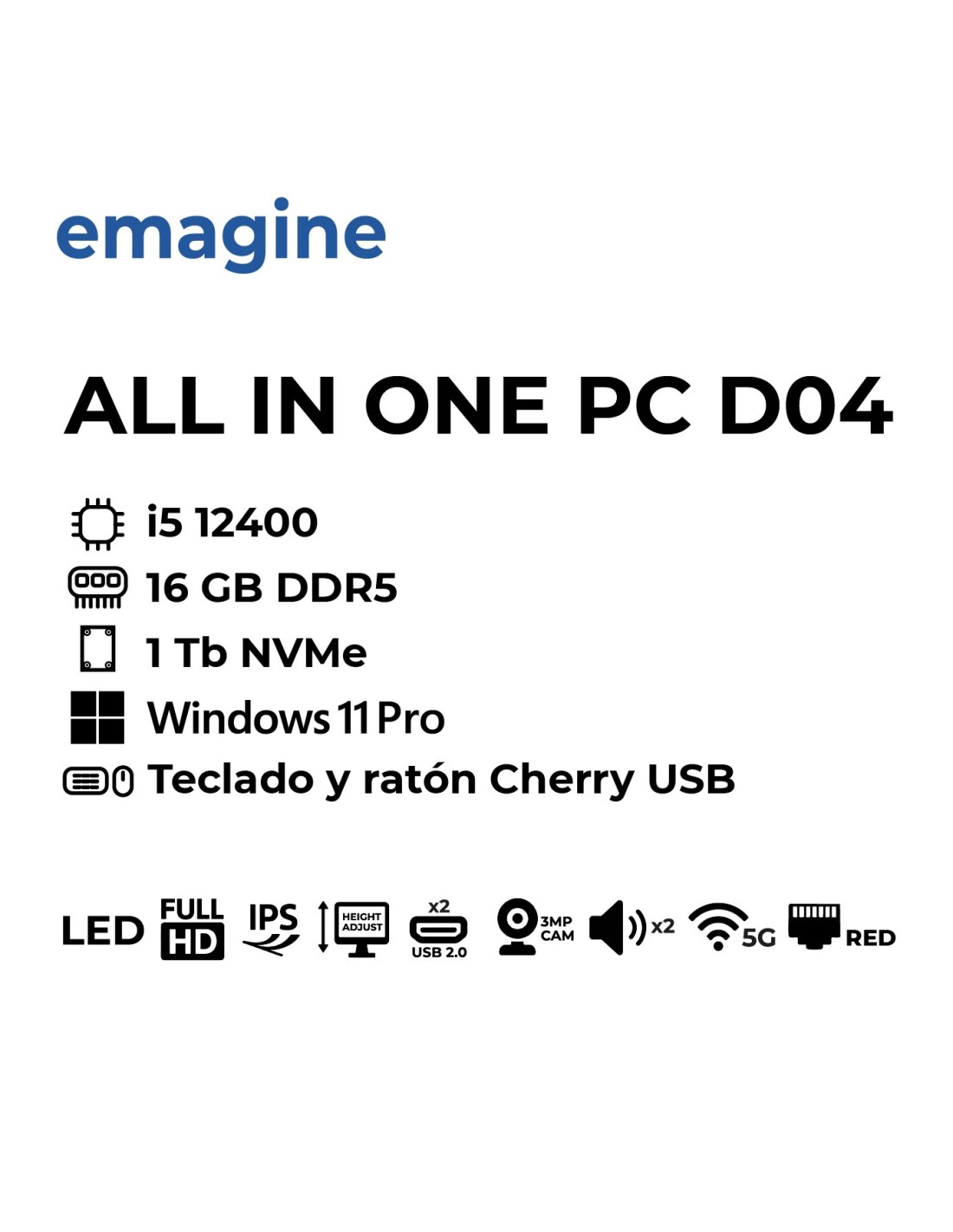 El Emagine D04 27" es un ordenador Todo en Uno diseñado para ofrecer potencia, comodidad y una experiencia visual amplia, ideal para oficinas, entornos corporativos y puestos de trabajo que requieren eficiencia y orden.