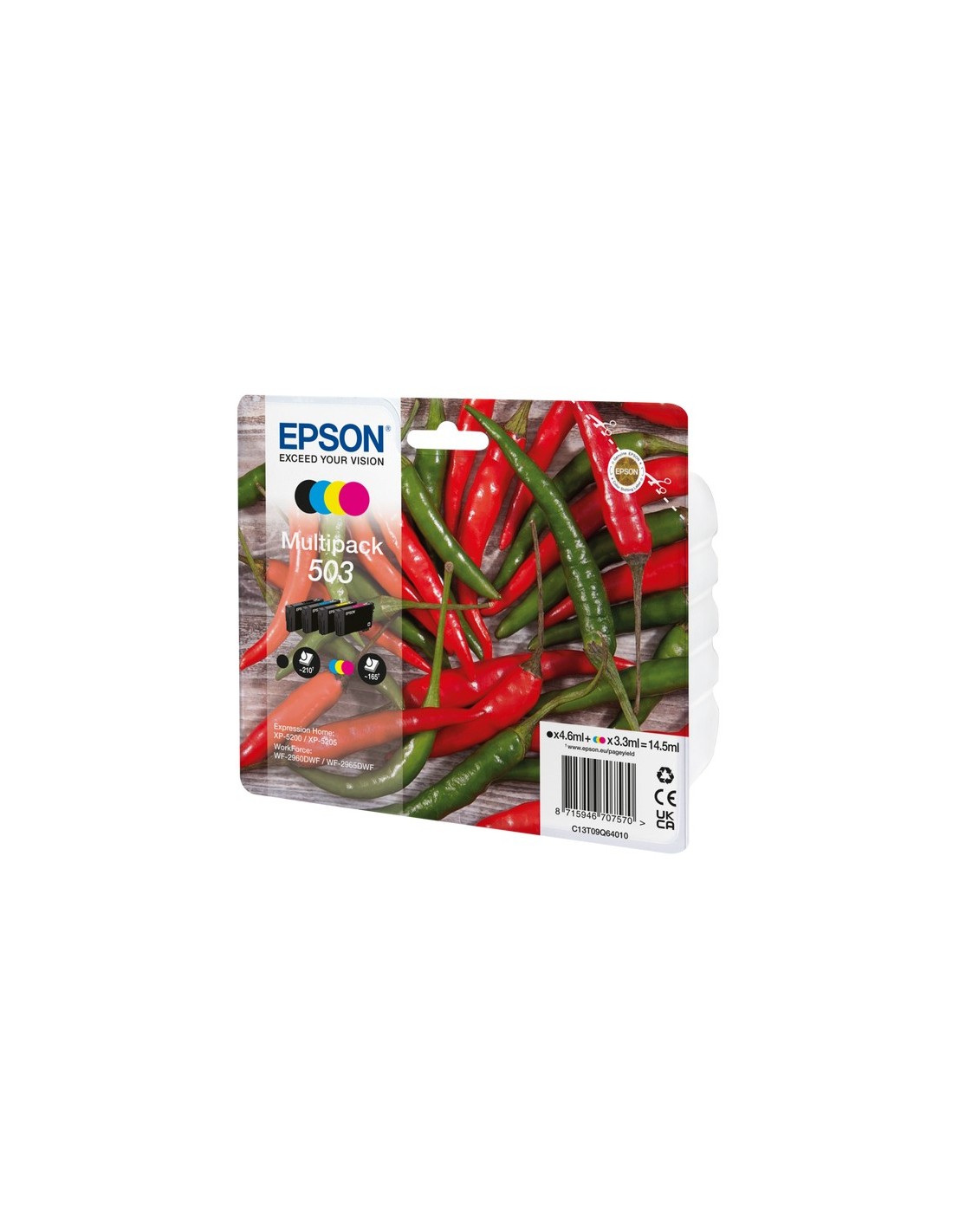 Epson 503. Tipo de cartucho de tinta: Rendimiento estándar, Volumen de tinta negra: 4,6 ml, Tipo de suministro: Multipack, Rendimiento de impresión de página con tinta de color: 165 páginas, Volumen de tinta de color: 3,3 ml, Colores de impresión: Negro, Cian, Magenta, Amarillo, Cantidad por paquete: 4 pieza(s), Rendimiento de impresión de página con tinta negra: 210 páginas