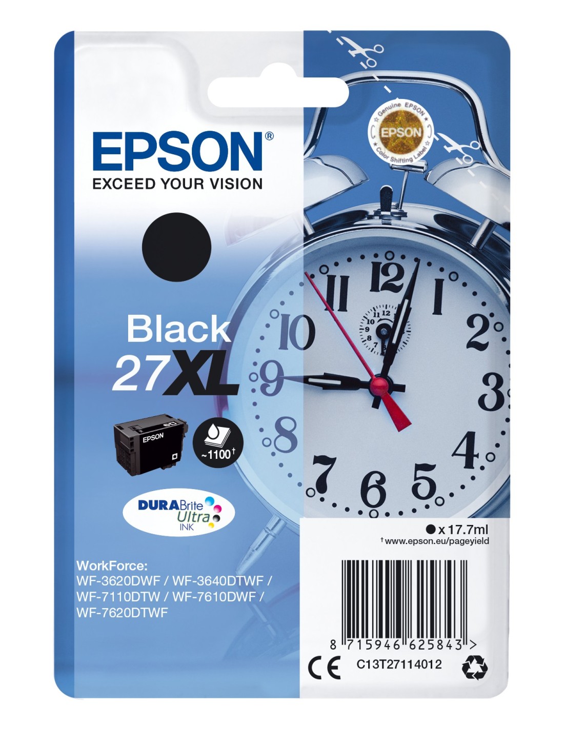 Epson Alarm clock Singlepack Black 27XL DURABrite Ultra Ink, Alto rendimiento (XL), Negro, Tinta a base de pigmentos, 17,7 ml, 1 pieza(s), 1100 páginas
