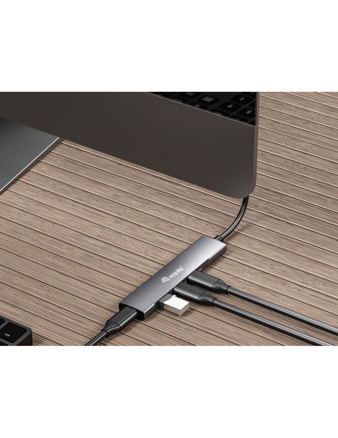 Equip 128963. Interfaz de host: USB 3.2 Gen 1 (3.1 Gen 1) Type-C, Interfaces de concentradores: USB 3.2 Gen 1 (3.1 Gen 1) Type-C. Velocidad de transferencia de datos: 5000 Mbit/s, Color del producto: Negro, Plata, Material de la carcasa: Aluminio. Tipo de fuente de alimentación: USB. Ancho: 20,7 mm, Profundidad: 101 mm, Altura: 7,7 mm. Ancho del paquete: 87 mm, Profundidad del paquete: 16 mm, Altura del paquete: 165 mm