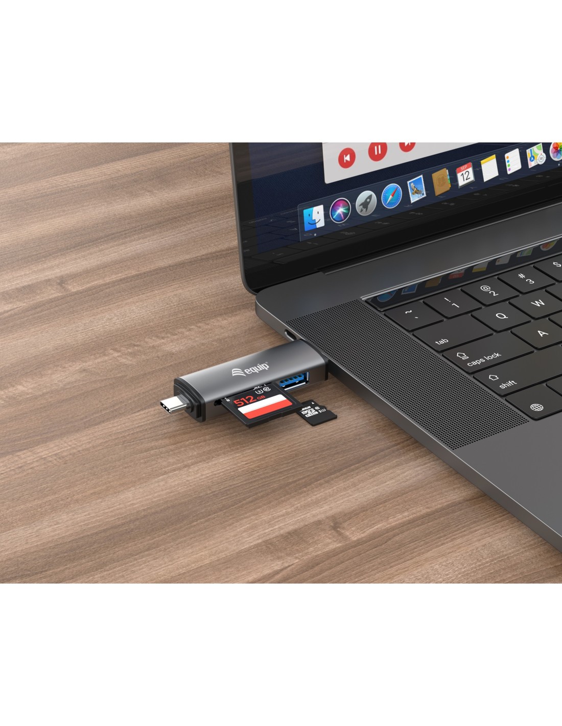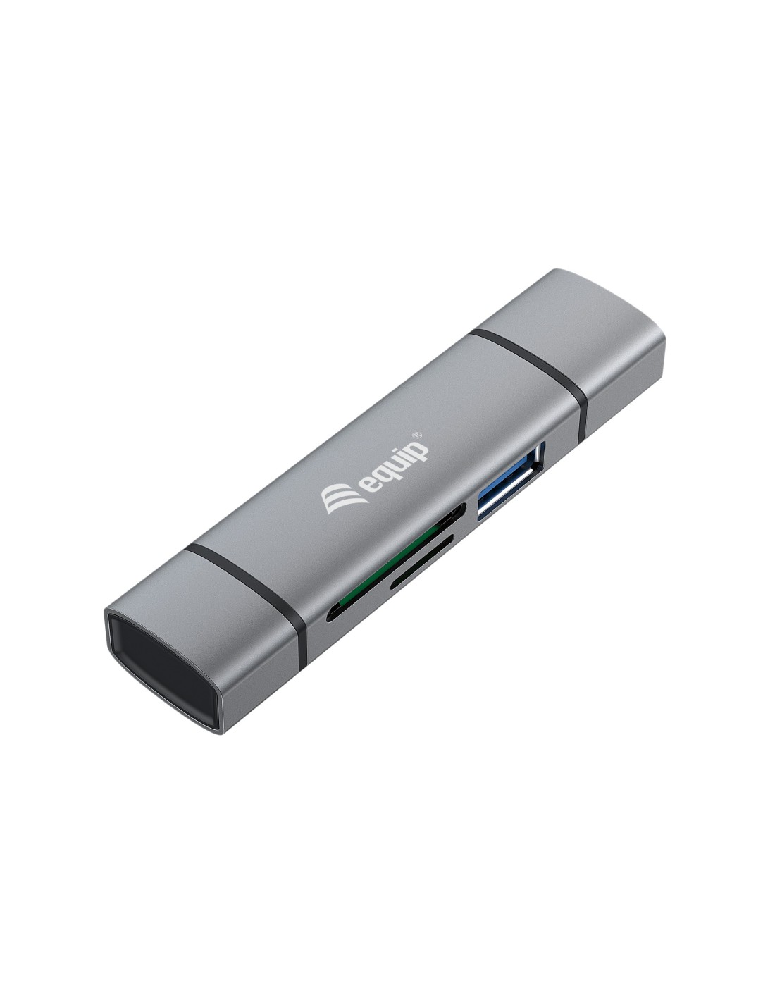 Equip 245460. Tarjetas de memoria compatibles: MicroSD (TransFlash), MicroSDHC, SD, SDHC, Color del producto: Gris, Certificación: CE & RoHS. Interfaz: USB 3.2 Gen 1 (3.1 Gen 1) Type-A/Type-C. Ancho: 202 mm, Profundidad: 12 mm, Altura: 86,2 mm. Cantidad por paquete: 1 pieza(s), Ancho del paquete: 74 mm, Profundidad del paquete: 21 mm. Sistema operativo Windows soportado: Windows 10, Windows 7, Windows 8, Sistema operativo MAC soportado: Mac OS X 10.10 Yosemite, Mac OS X 10.11 El Capitan, Mac OS X 10.12 Sierra, Mac OS X 10.13 High..., Sistemas operativos móviles soportados: Android, iOS