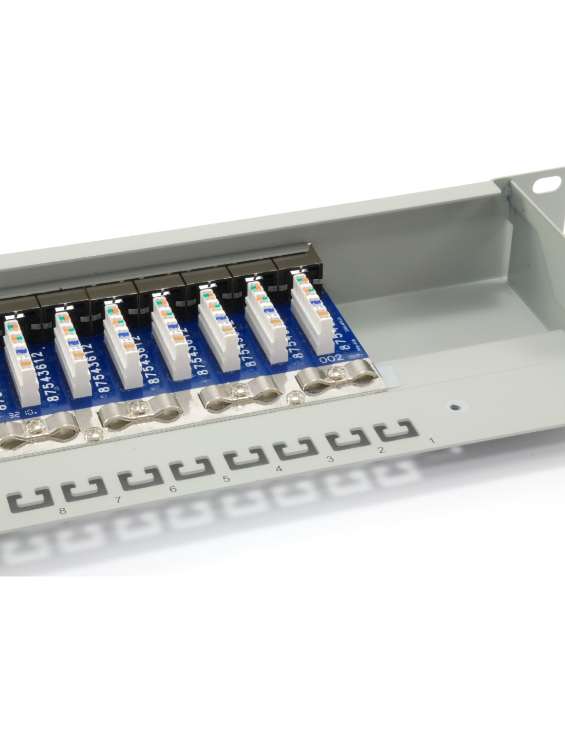 Equip 326316. Conector: RJ-45, Contactos del conector chapado: Oro, Tipos de cable soportados: Cat6. Color del producto: Gris, Montaje: Montaje en bastidor, Capacidad del rack: 1U. Ancho: 44 mm, Altura: 483 mm, Profundidad: 109 mm. Ancho del paquete: 150 mm, Profundidad del paquete: 75 mm, Altura del paquete: 560 mm