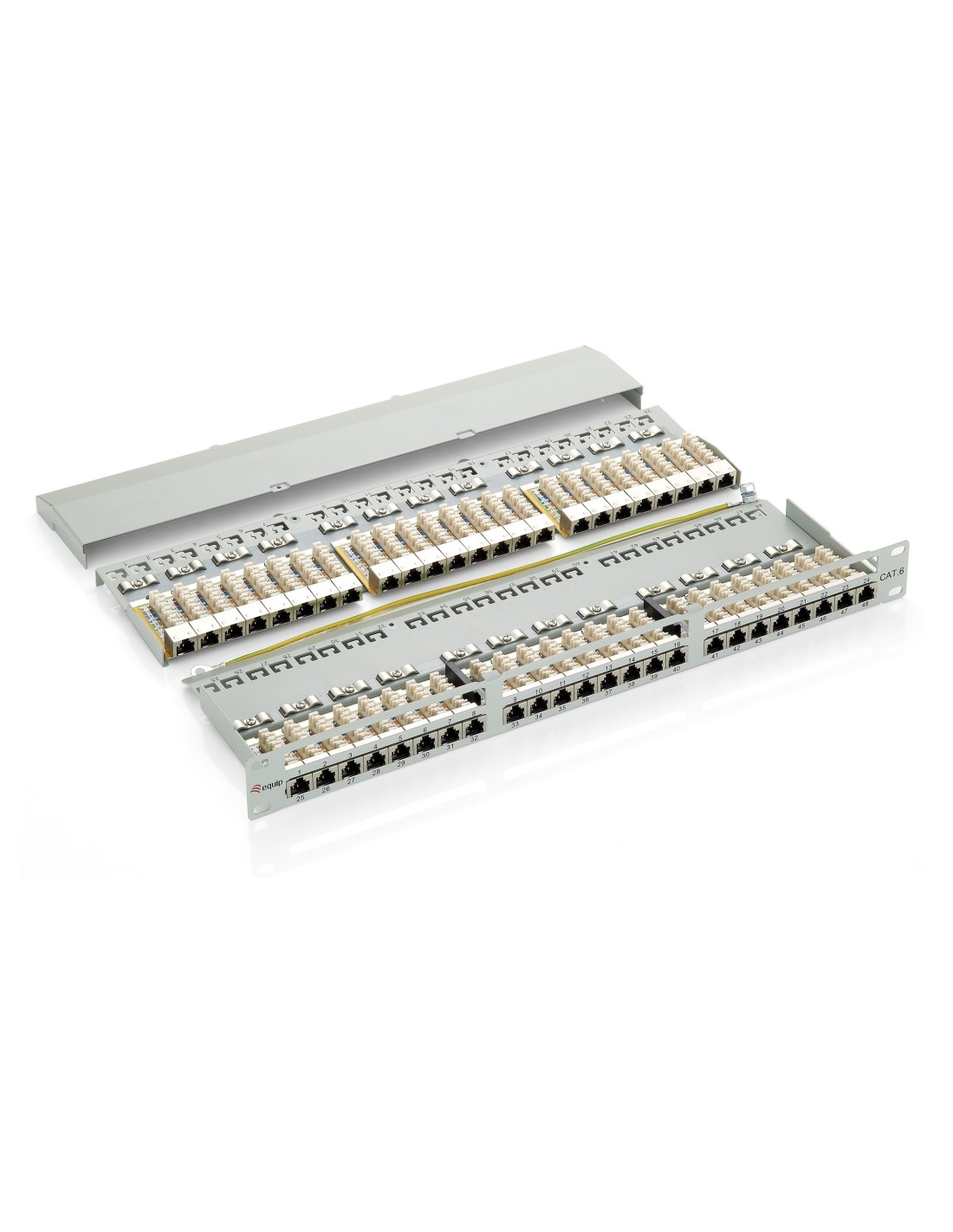 Equip 326348. Conector: RJ-45, Contactos del conector chapado: Oro, Tipos de cable soportados: Cat6. Color del producto: Gris, Montaje: Montaje en bastidor, Capacidad del rack: 1U. Ancho: 44 mm, Altura: 483 mm, Profundidad: 142 mm. Ancho del paquete: 175 mm, Profundidad del paquete: 50 mm, Altura del paquete: 520 mm