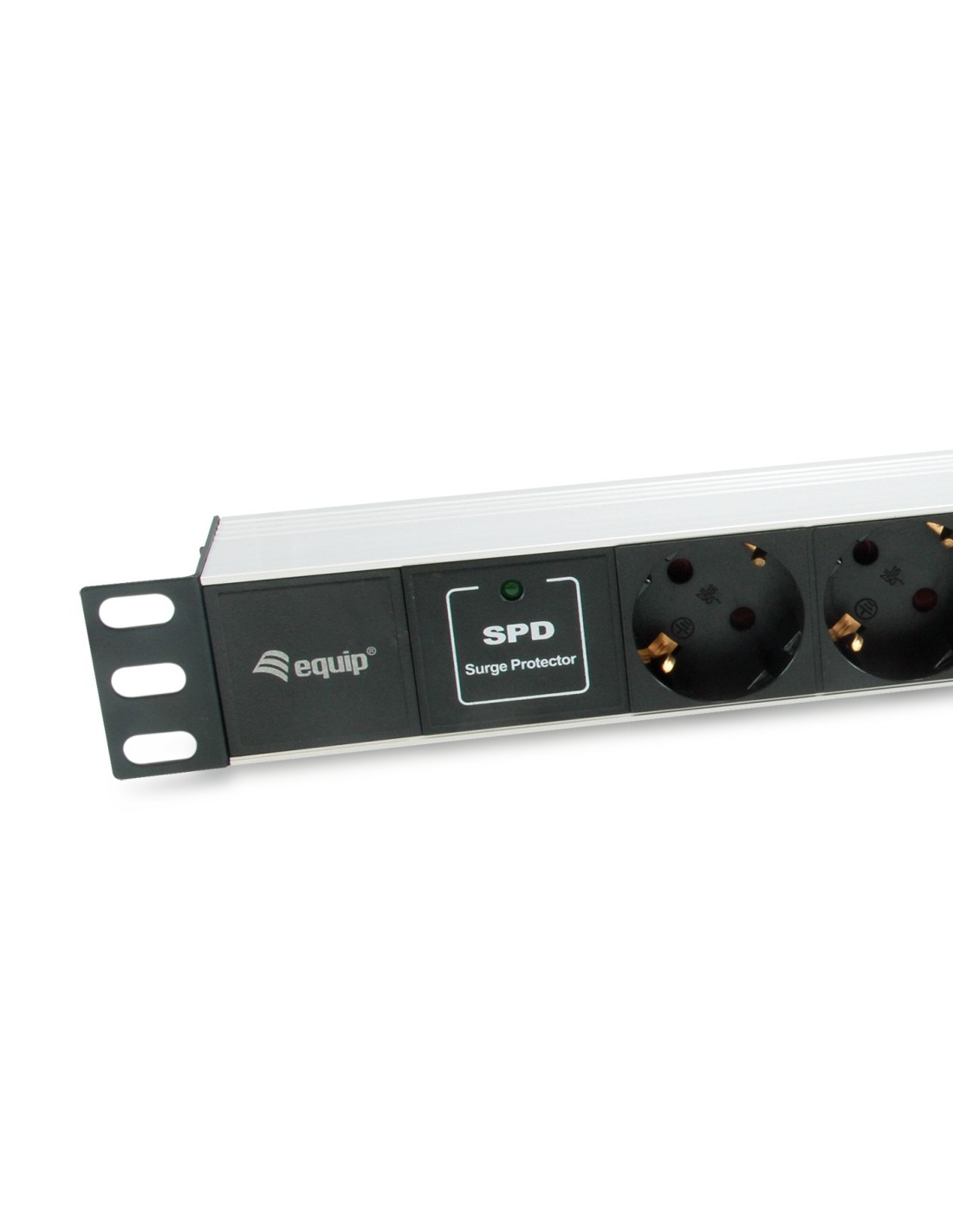 Equip 333315. PDU tipos: Básico, Capacidad del rack: 1U, Montaje: Horizontal. Cantidad de salidas AC: 7 salidas AC, Tipo de salida AC: Tipo F, Conector: Tipo F. Longitud de cable: 1,8 m. Voltaje nominal de entrada: 220 - 240 V, Máxima corriente: 16 A, Frecuencia de entrada AC: 50 - 60 Hz. Certificados de conformidad: RoHS, Certificación: CE
