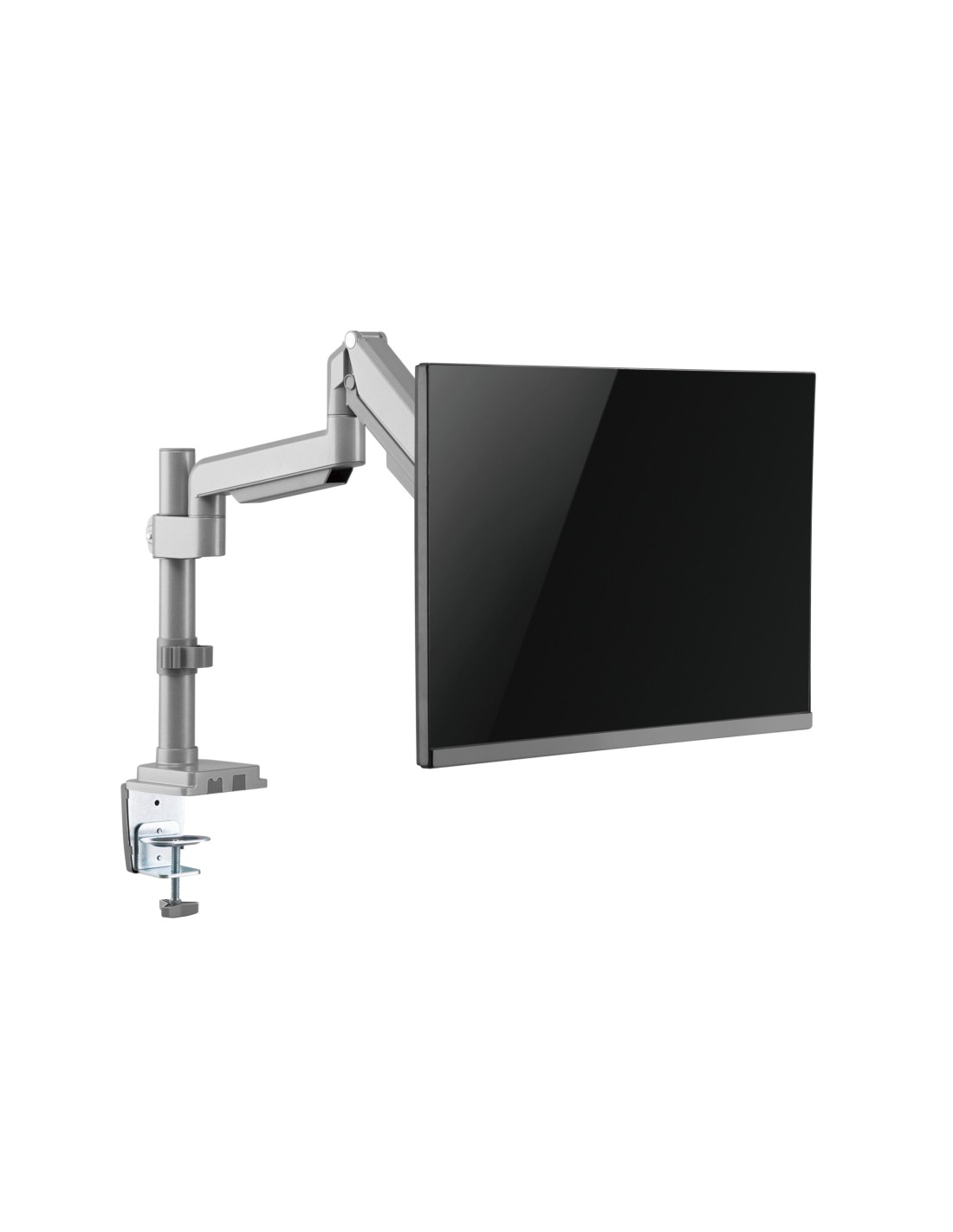 Equip 650112. Montaje: Pinza/Atornillado, Capacidad máxima de peso: 9 kg, Tamaño mínimo de pantalla: 43,2 cm (17"), Tamaño máximo de pantalla: 81,3 cm (32"), Compatibilidad con interfaz de montaje (min): 75 x 75 mm, Compatibilidad con interfaz de montaje (max): 100 x 100 mm. Ajustes de altura, Ángulo de giro (alcance): -90 - 90°, Ángulo de inclinación: -90 - 90°. Color del producto: Plata