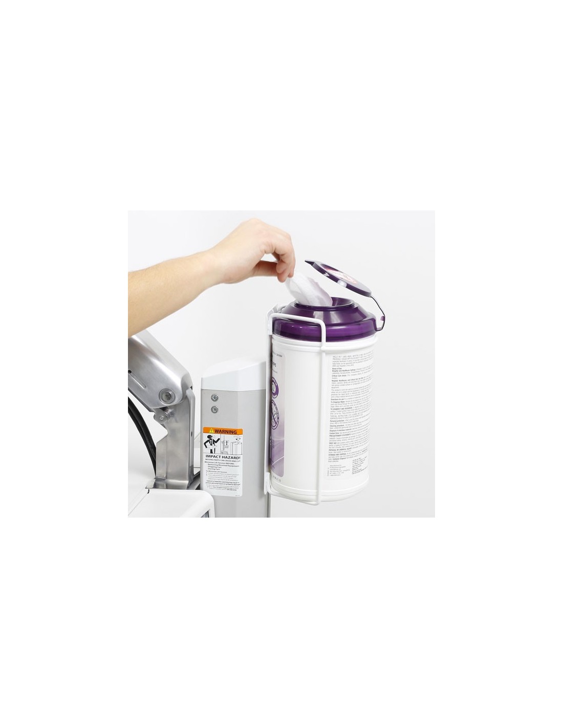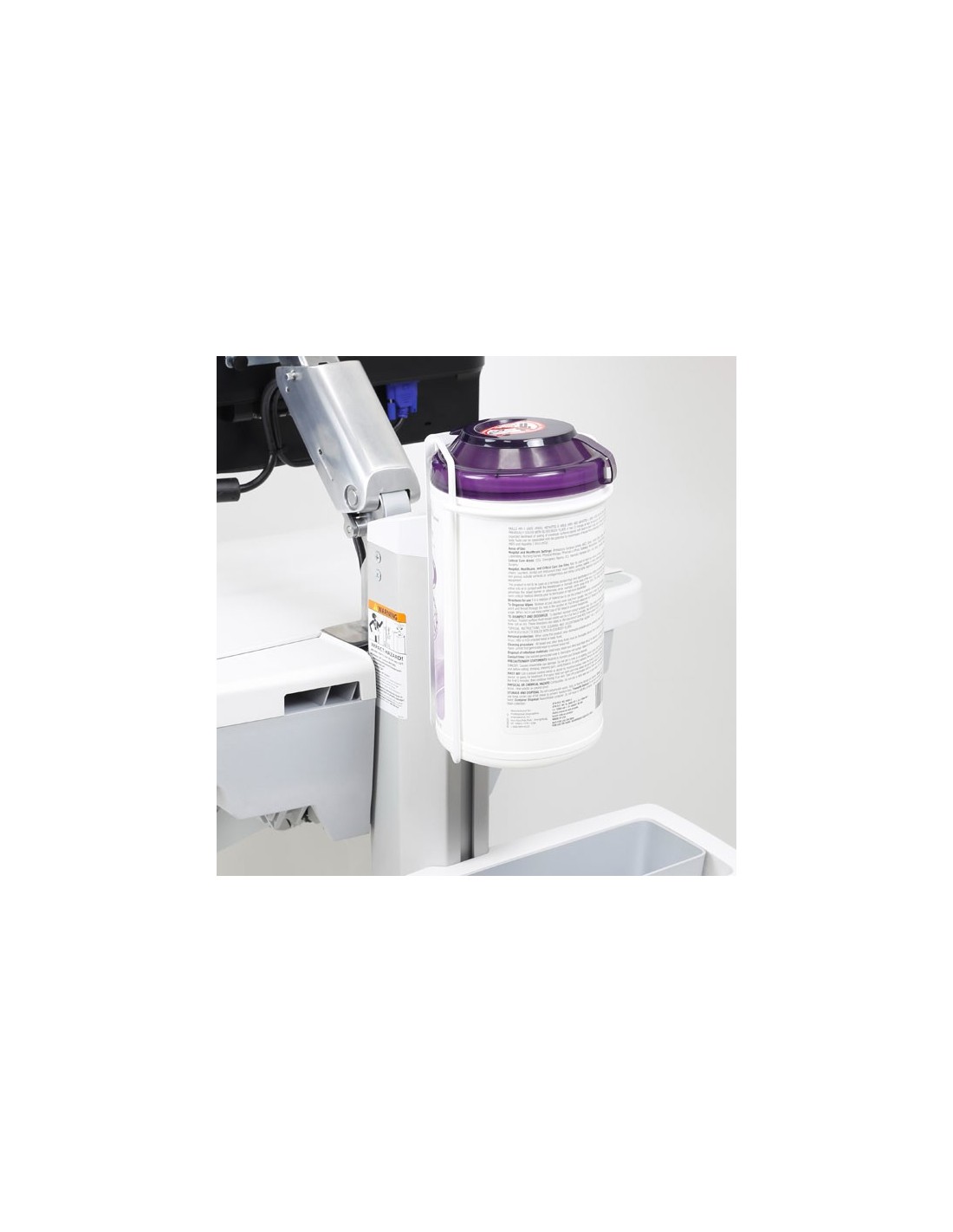 Añada un práctico dispensador de toallitas sanitarias a un carro Ergotron. Este kit añade un soporte de rejilla al canal de ranura en T del carro que se encuentra en su columna principal.