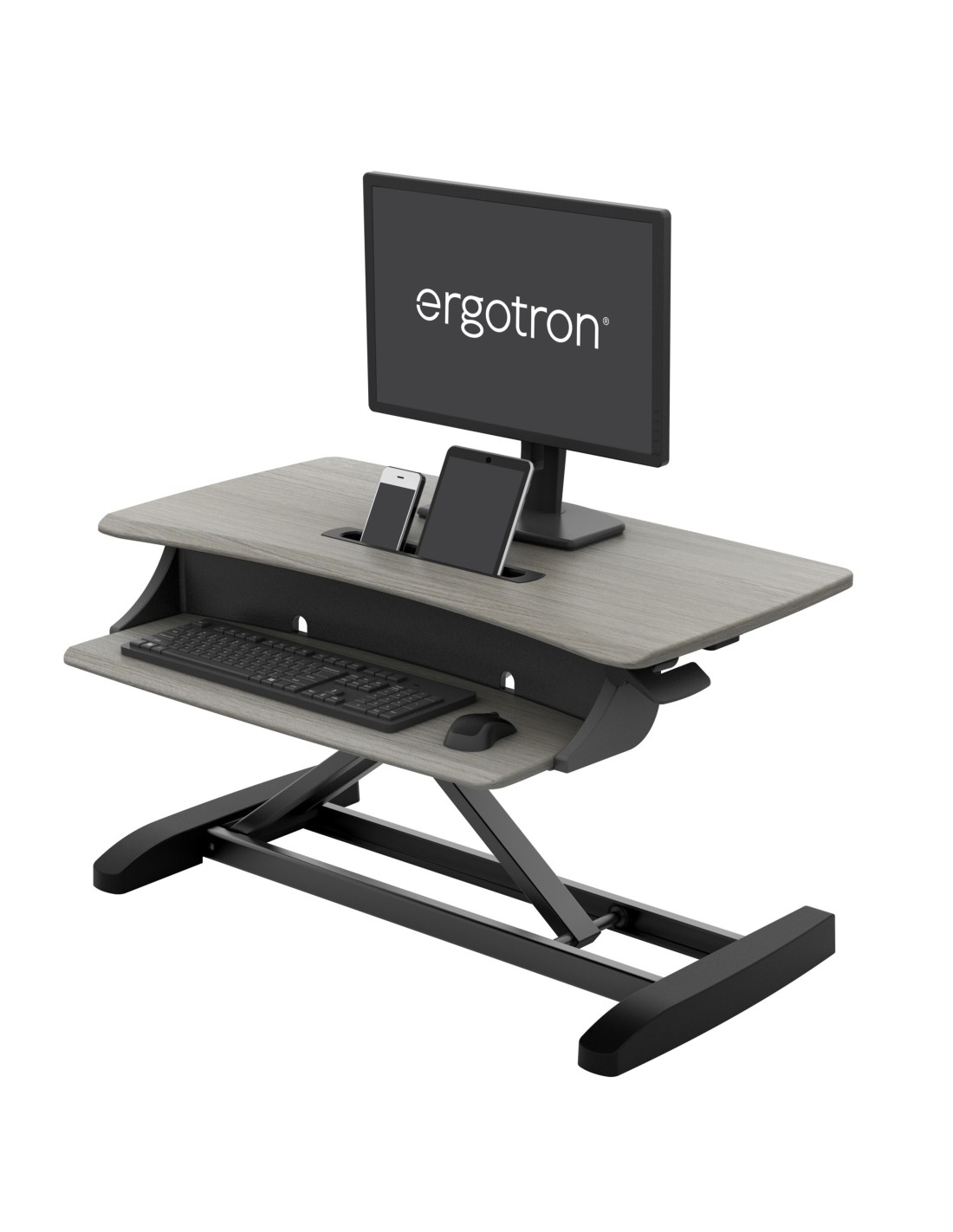 Haga que su espacio de trabajo funcione para usted con el nuevo WorkFit Z Mini. Con grandes beneficios, este convertidor compacto convierte su escritorio actual en un escritorio para trabajar de pie de altura ajustable. Está diseñado para la forma en que trabaja mejor—sentado o de pie—con un acabado de imitación madera gris que refresca su oficina en casa. Actualice a un escritorio para trabajar de pie o sentado que se adapte a usted y a la tecnología que le gusta—monitores únicos, tabletas o portátiles. Lo mejor de todo, su configuración es tan fácil como 1-2-Z.