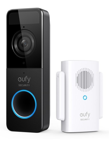 Eufy Video Doorbell 1080p. Color del producto: Negro, Blanco, Mejores usos: Hogar, Código IP (International Protection): IP65. Máxima resolución de video: 1600 x 1200 Pixeles, Distancia de visión nocturna: 5 m, Formato de vídeo soportado: 1080p. Tecnología de conectividad: Inalámbrico, Frecuencia: 2400 MHz. Alimentación: Batería, Capacidad de batería: 5000 mAh, Duración de la batería: 4 mes(es). Timbre, ancho: 4,57 cm, Timbre, grosor: 2,79 cm, Timbre, altura: 13,2 cm