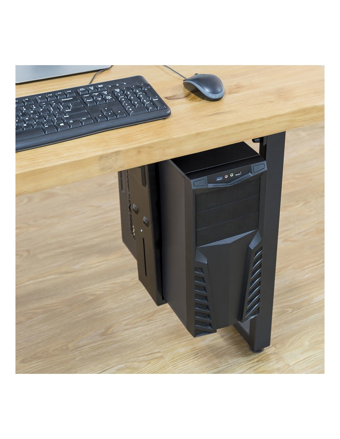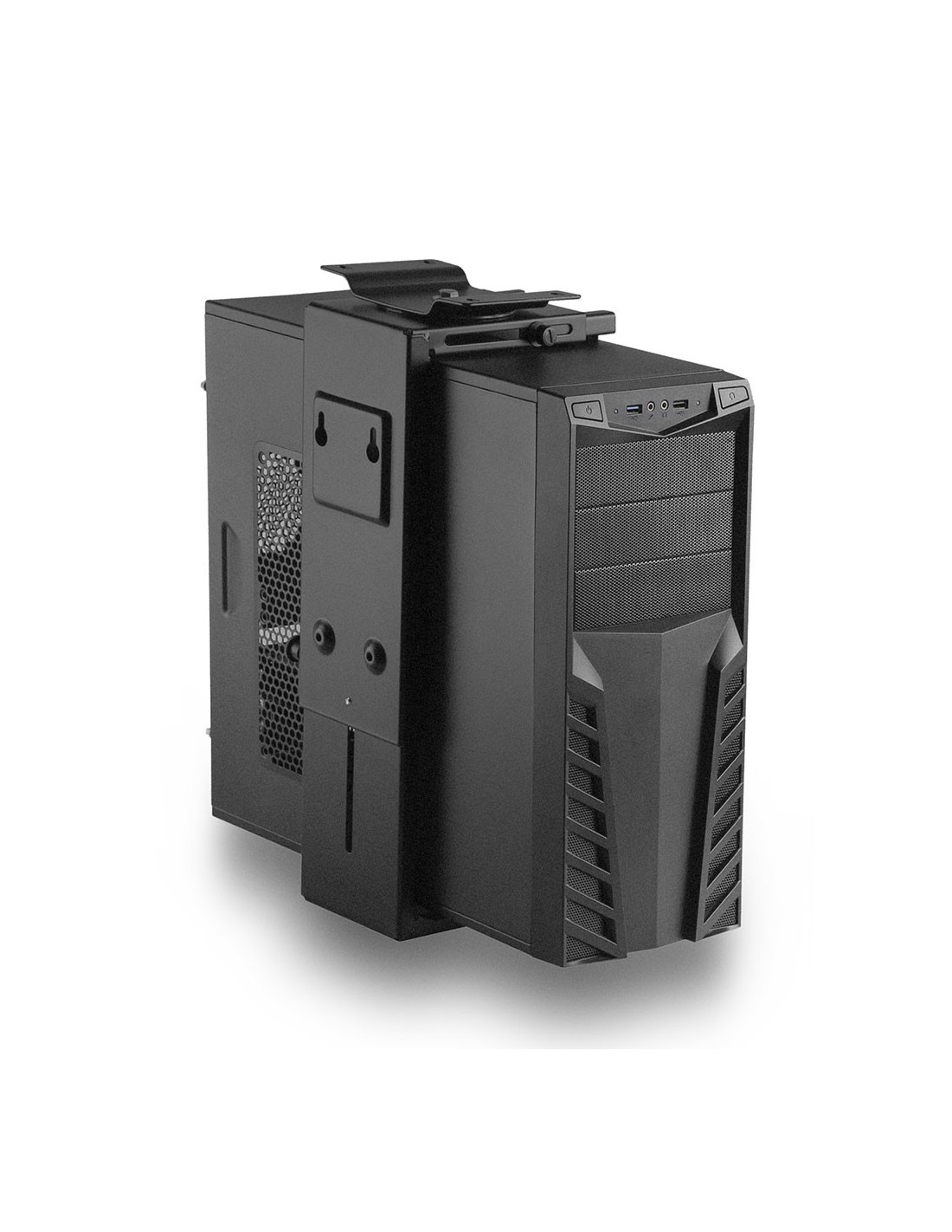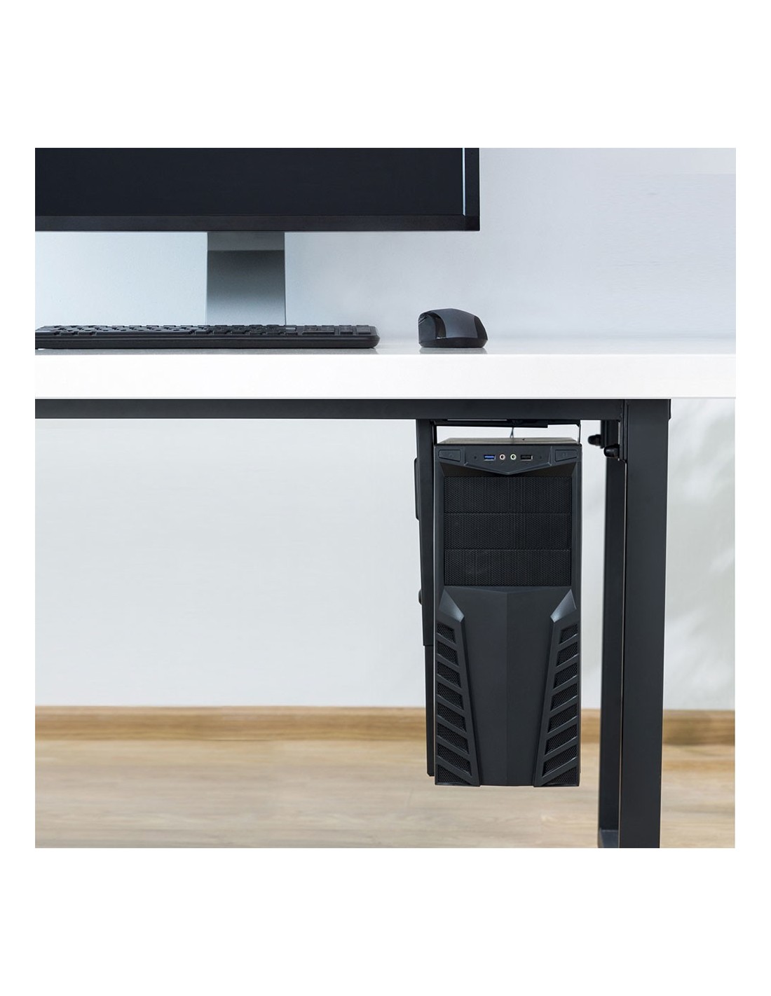 Ewent EW1293. Tipo: Soporte para instalación de CPU bajo mesa, Tipo de chasis recomendado: Universal, Capacidad máxima de peso: 10 kg. Anchura de ordenador admitida (vertical) (mín.): 9 cm, Anchura de ordenador admitida (vertical) (máx.): 20 cm, Altura de ordenador admitida (vertical) (mín.): 30 cm. Ancho: 203 mm, Rango de ajuste a anchura: 88 - 203 mm, Profundidad: 175 mm