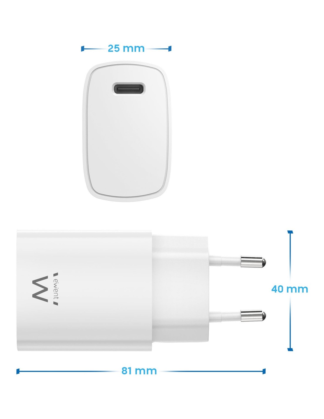 Ewent EW1320_R1. Tipo de cargador: Interior, Alimentación: Corriente alterna, Compatibilidad del cargador: Universal. Voltaje de entrada: 100 - 240 V, Voltaje de salida máximo: 12 V. Número de puertos USB Tipo C: 1, Carga rápida, Funciones de protección de poder: Sobreintensidad, Sobretensión, Sobrevoltaje, Sobrecalentamiento. Color del producto: Blanco