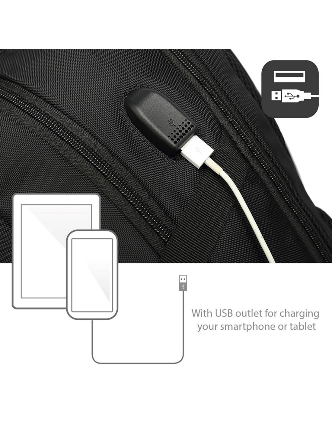 La mochila tiene una salida USB integrada para cargar su teléfono inteligente. Conecte un banco de energía y guarde el banco de energía en la bolsa. Tome el cable de carga de sus dispositivos móviles y conecte este cable a la toma USB. Puede cargar su teléfono inteligente mientras viaja.