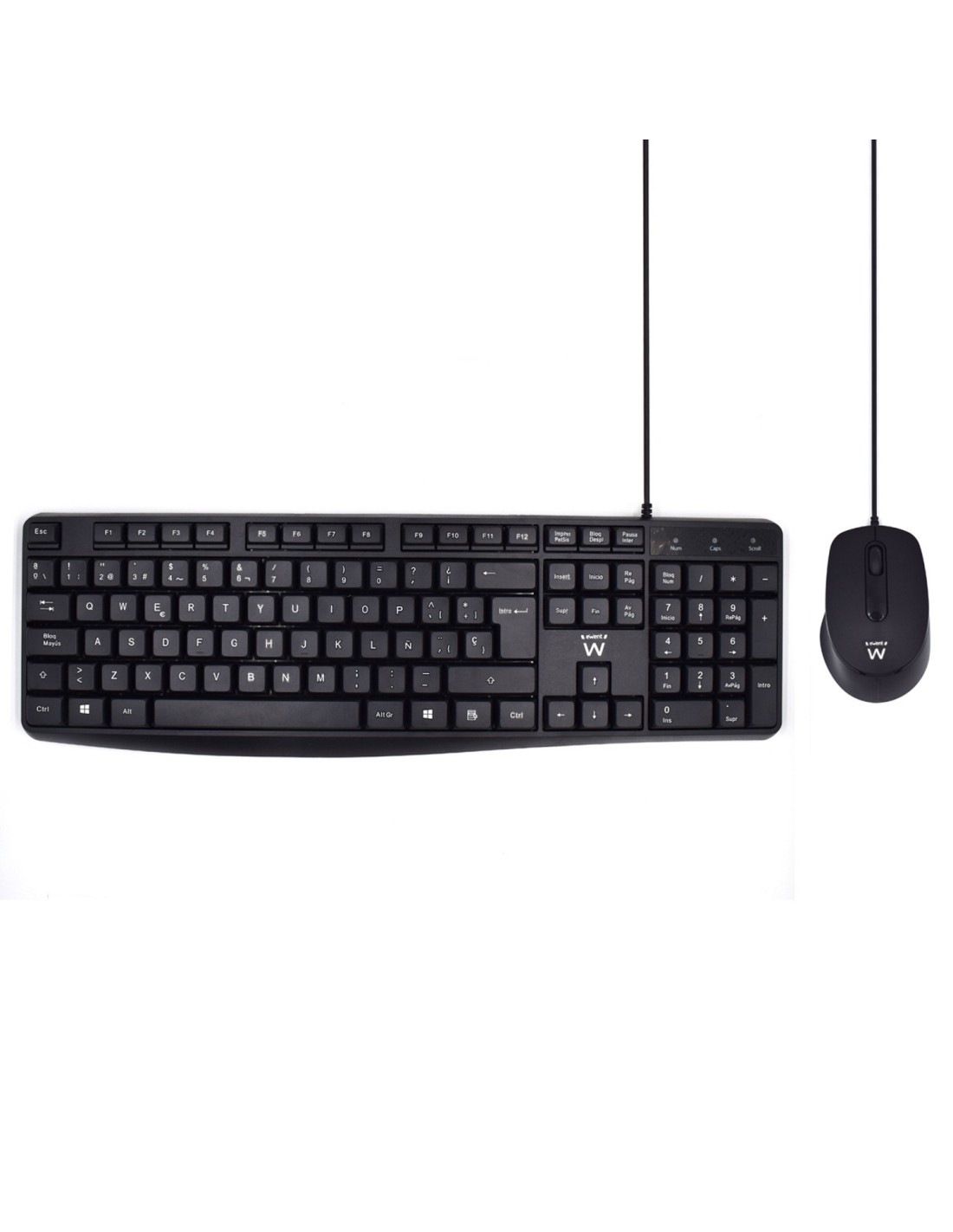 Ewent EW3006. Formato del teclado: Completo (100%). Estilo de teclado: Derecho. Tecnología de conectividad: Alámbrico, Interfaz del dispositivo: USB, Interruptor del teclado: Interruptor de membrana, Diseño de teclado: QWERTY, Teclado, cantidad de teclas: 104. Longitud de cable: 1,35 m. Uso recomendado: Oficina. Color del producto: Negro. Ratón incluido