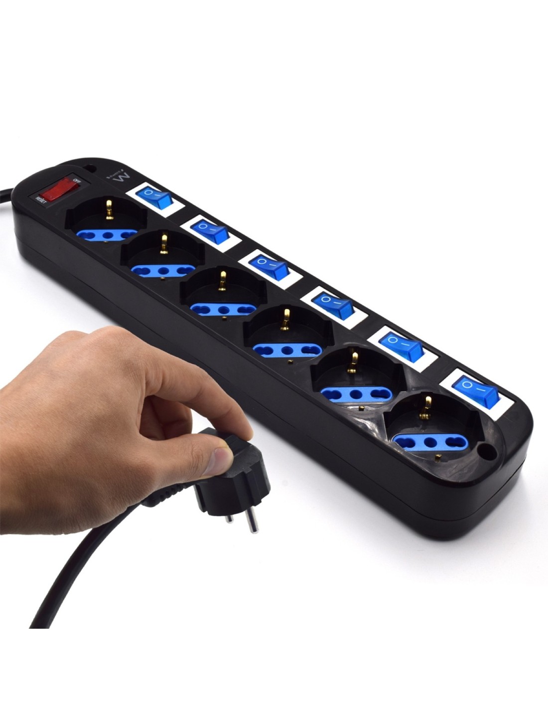 Ewent EW3851. Cantidad de salidas AC: 6 salidas AC, Tipo de salida AC: Tipo F, Tipo L, Voltaje nominal de entrada: 220 V. Color del producto: Negro, Tipo de enchufe: Type F (CEE 7/4). Longitud de cable: 1,5 m