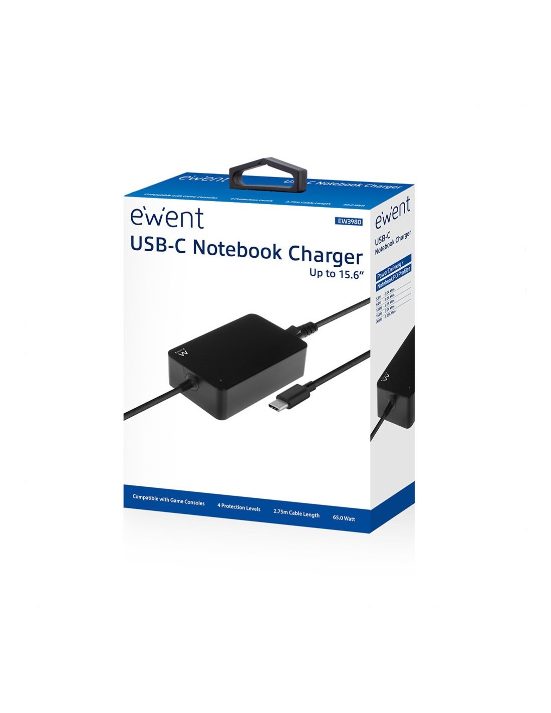 Ewent EW3980. Utilizar con: Portátil, Tipo de fuente de alimentación: Interior, Voltaje de entrada: 100 - 240 V. Color del producto: Negro. Ancho: 95 mm, Profundidad: 55 mm, Altura: 25 mm. Ancho del paquete: 150 mm, Profundidad del paquete: 45 mm, Altura del paquete: 180 mm. Cantidad por paquete: 1 pieza(s)