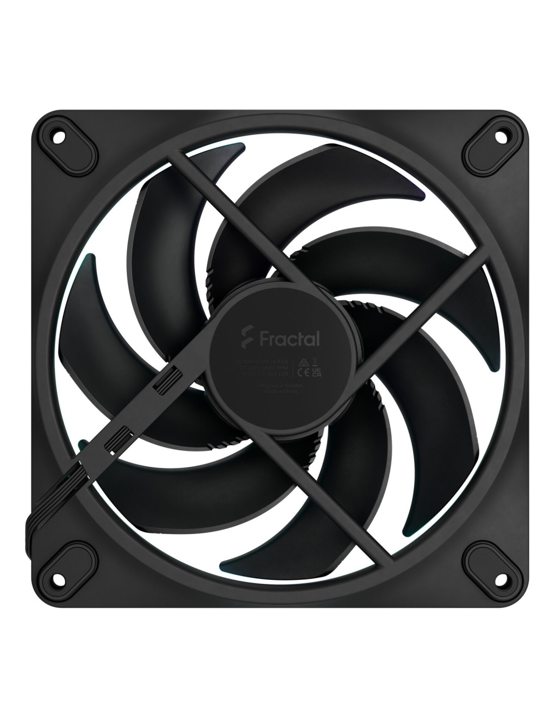 Fractal Design Momentum 14 RGB. Tipo: Ventilador, Diámetro de ventilador: 14 cm, Velocidad de rotación (mín.): 350 RPM, Velocidad de rotación (máx.): 1800 RPM, flujo de aire: 126,6 m³/h, Presión máxima de aire: 2,45 mmH2O, Tipo de soporte: Rodamiento dinámico fluido (FDB). Color del producto: Negro