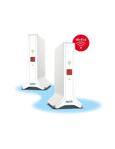 El FRITZ!Mesh Wi-Fi Set 4200 garantiza el más alto rendimiento Wi-Fi en la red local con Wi-Fi 6. Es ideal para espacios amplios de hasta 4 estancias. Con tres unidades de radio, puede alcanzar una velocidad de hasta 4.200 Mbps, el set Mesh proporciona una conexión estable y un ancho de banda máximo para todos los dispositivos Wi-Fi conectados simultáneamente. El FRITZ!Mesh Wi-Fi Set asegura una cobertura Wi-Fi perfecta en todos los rincones de la casa u oficina. Equipado con dos puertos LAN Gigabit por dispositivo, garantiza una rápida distribución de datos en la red local a través de la conexión por cable. Perfecto para streamings, Gaming y descargas. Gracias a las actualizaciones gratuitas siempre está a la última en seguridad y con las más completas funciones. Indicadores LED para su óptima posición, asistentes de software y una interfaz de usuario intuitiva lo completan.