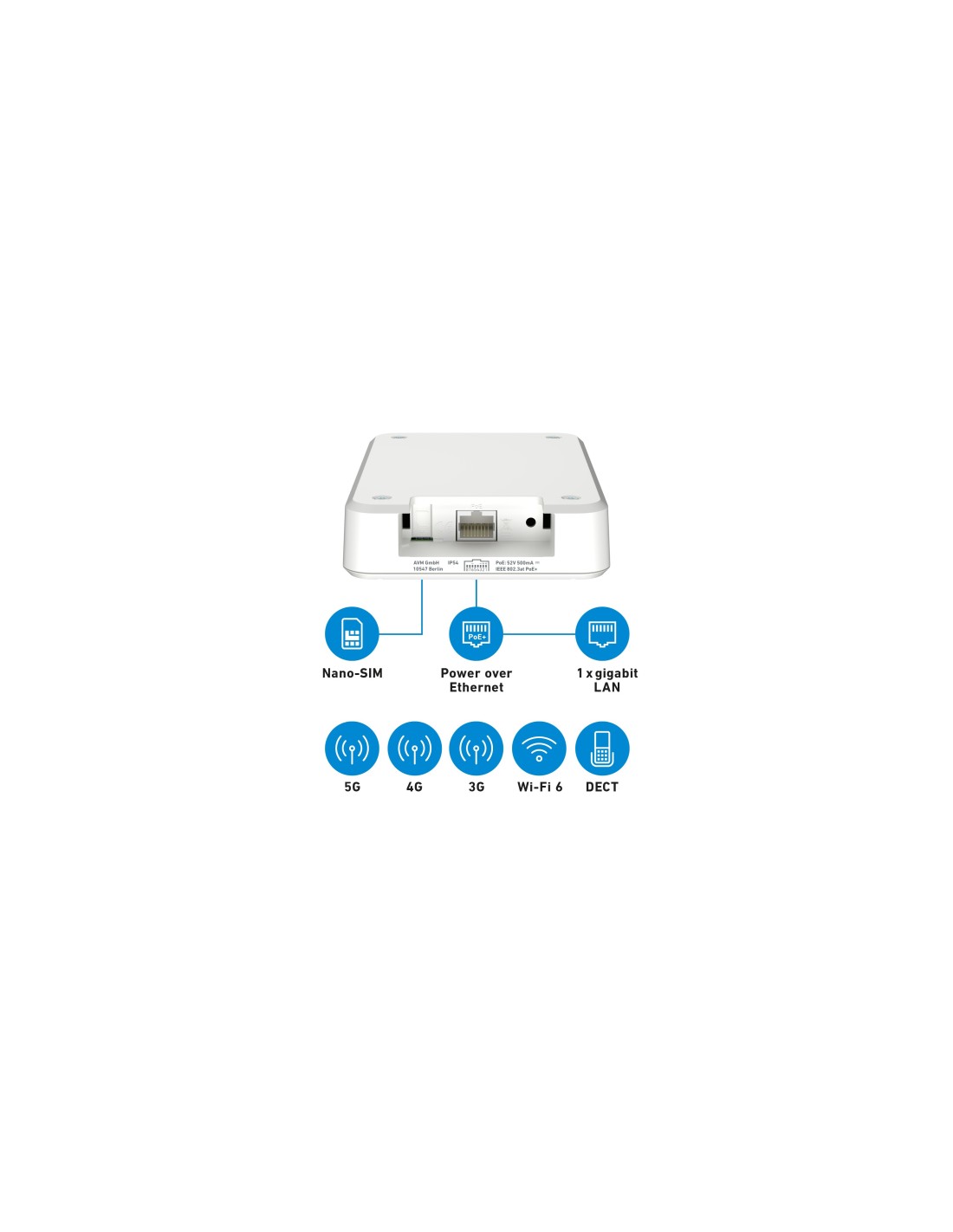 El FRITZ!Box 6860 5G Edition International, este Router móvil lleva la red 5G de Internet móvil a la red local inalámbrica, ultrarrápido con hasta 1,3 Gbps, compatible tanto con 5G (NSA, SA) como con LTE. Su potente Wi-Fi Mesh con Wi-Fi 6, distribuye los datos de forma inalámbrica por toda la casa a una velocidad de hasta 3 Gbps. Diseño compacto, con alimentación eléctrica (PoE+) se puede utilizar tanto en interiores como en exteriores, 1 Puerto LAN Gibagit y la centralita VoIP con estación base DECT para conexión de dispositivos de domótica y telefonía, complementan la oferta versátil de comunicación.