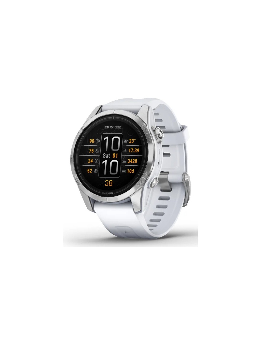 Garmin epix Pro (Gen 2). Diagonal de la pantalla: 3,05 cm (1.2"), Tecnología de visualización: AMOLED, Resolución de la pantalla: 390 x 390 Pixeles, Pantalla táctil. Memoria flash: 32 GB. Wifi. GPS (satélite). Peso: 63 g. Material de la banda: Silicona, Color de banda: Blanco