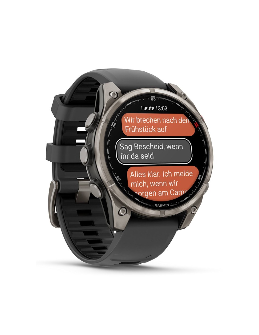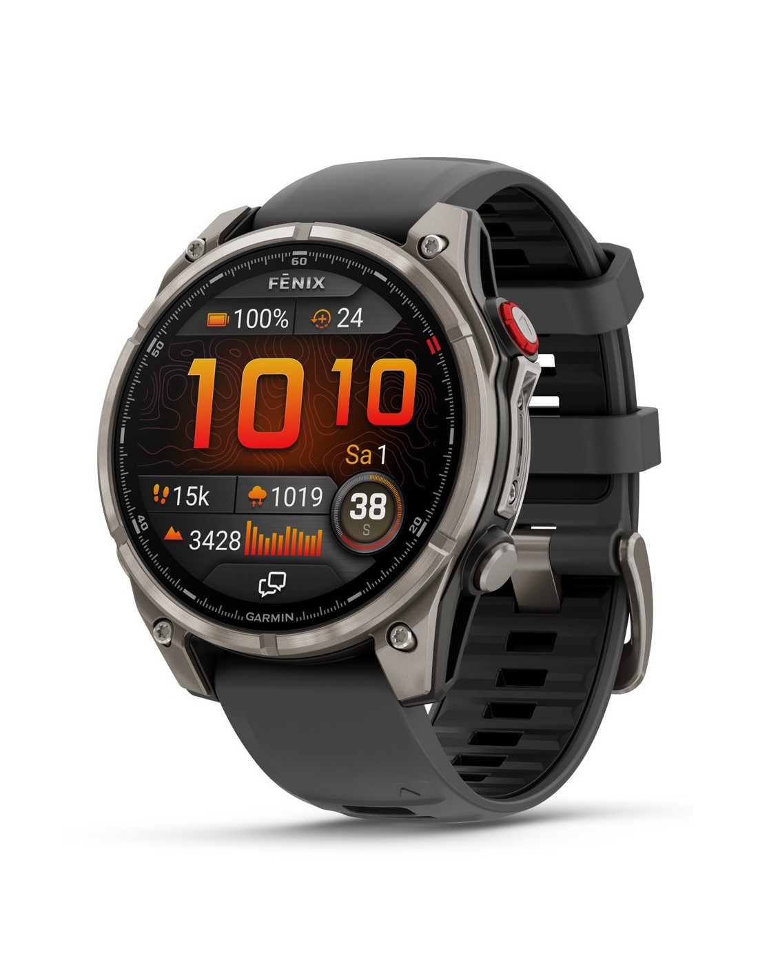 Garmin fēnix 8 Pro. Diagonal de la pantalla: 3,56 cm (1.4"), Tecnología de visualización: AMOLED, Resolución de la pantalla: 454 x 454 Pixeles, Pantalla táctil. Memoria flash: 32 GB. Wifi. GPS (satélite). Peso: 77 g. Material de la banda: Silicona, Color de banda: Negro