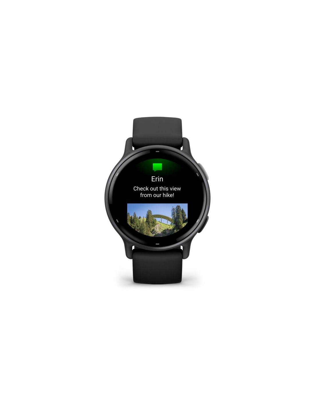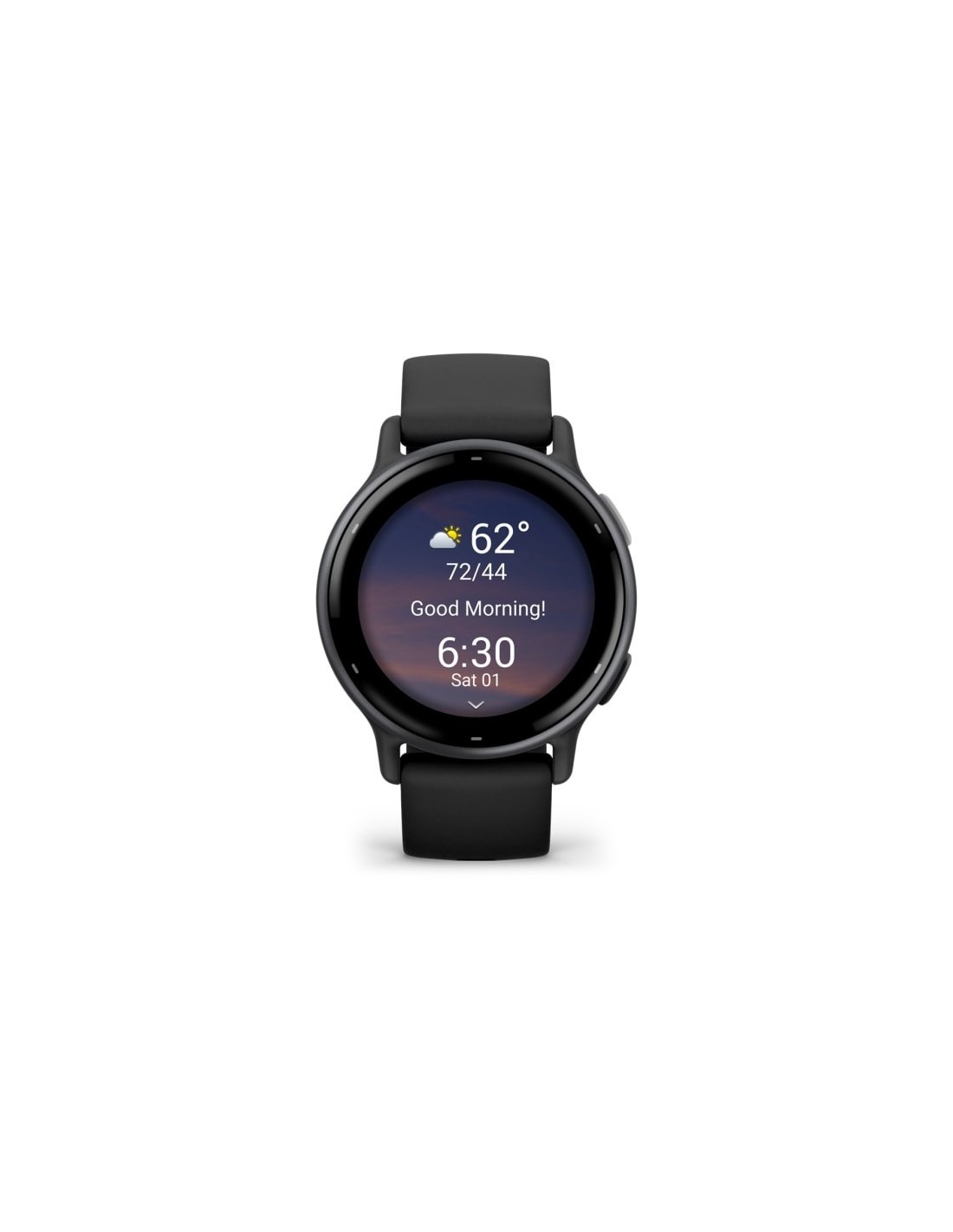 Garmin Vivoactive 5. Diagonal de la pantalla: 3,05 cm (1.2"), Tecnología de visualización: AMOLED, Resolución de la pantalla: 390 x 390 Pixeles, Pantalla táctil. Memoria flash: 4 GB. Wifi. GPS (satélite). Peso: 36 g. Material de la banda: Silicona, Color de banda: Negro, Tamaño de banda: Talla única