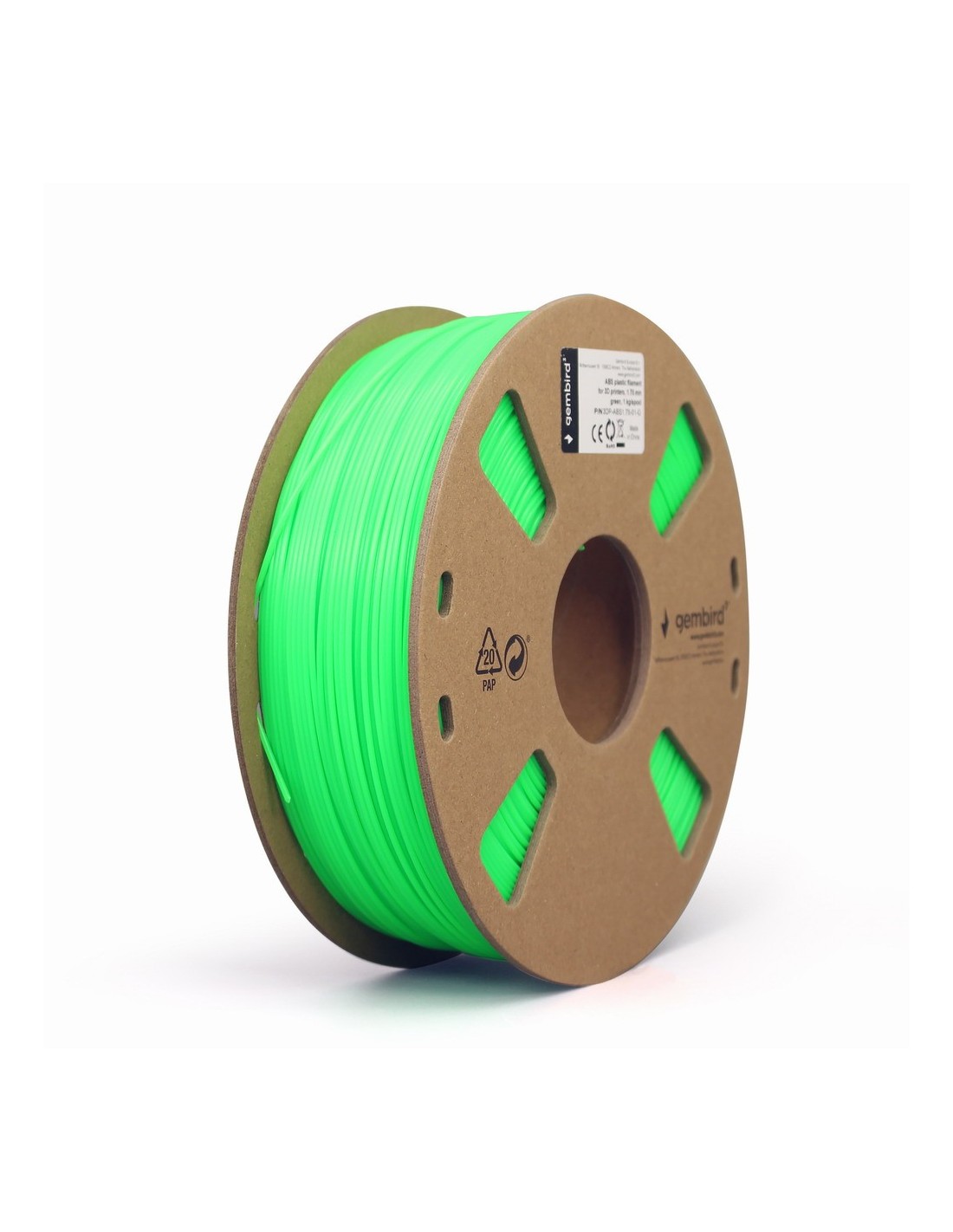Gembird 3DP-ABS1.75-01-G. Materiales de impresión: ABS, Colores de impresión: Verde, Marca compatible: Cualquier marca. Peso: 1,4 kg, Ancho: 160 mm, Profundidad: 160 mm. Cantidad por paquete: 1 pieza(s), Ancho del paquete: 210 mm, Profundidad del paquete: 210 mm
