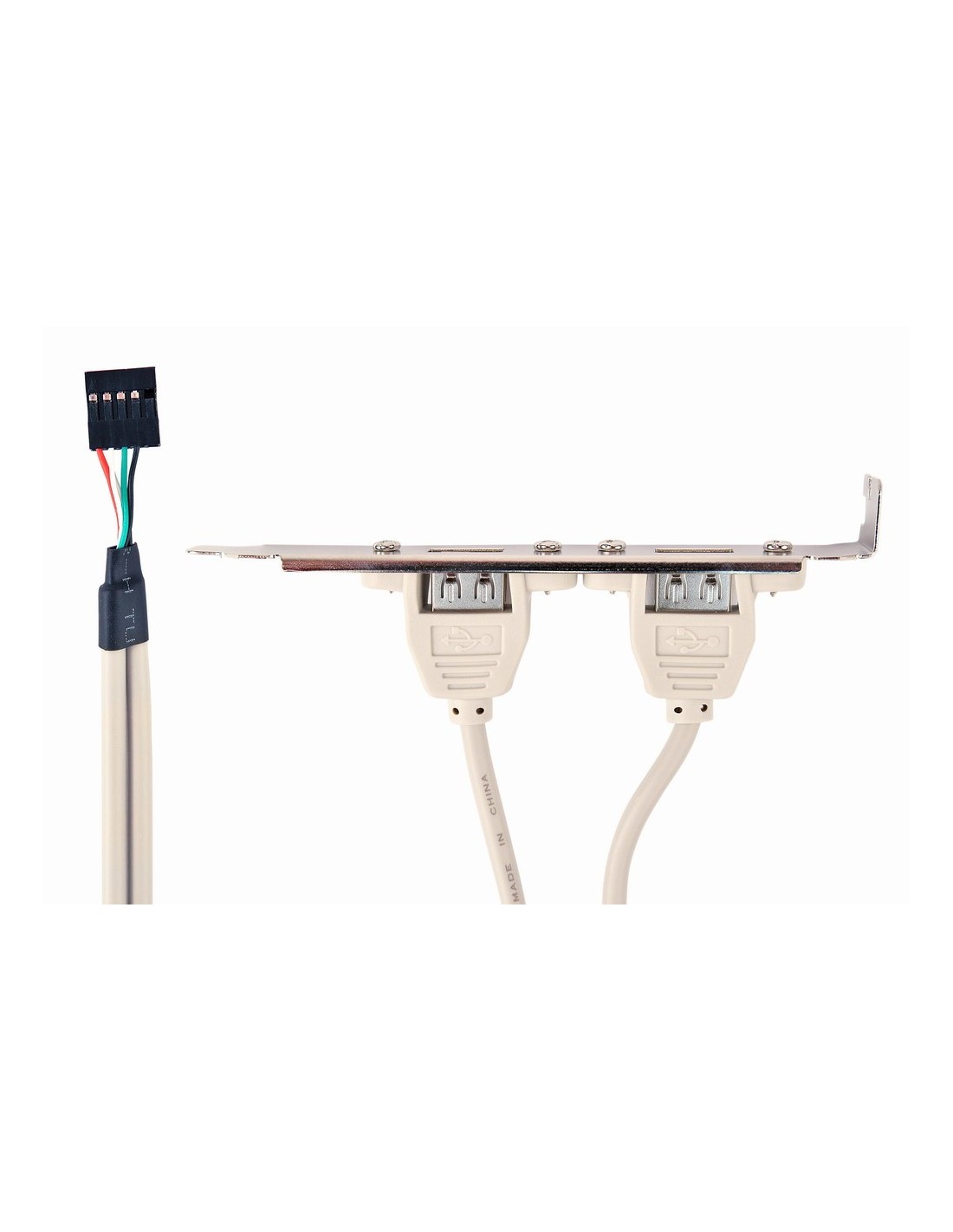 Gembird Bracket conexión doble USB a placa base. Interfaz de salida: USB 2.0. Color del producto: Gris, Metálico. Cantidad por paquete: 1 pieza(s), Ancho del paquete: 110 mm, Profundidad del paquete: 120 mm. Longitud de cable: 0,25 m
