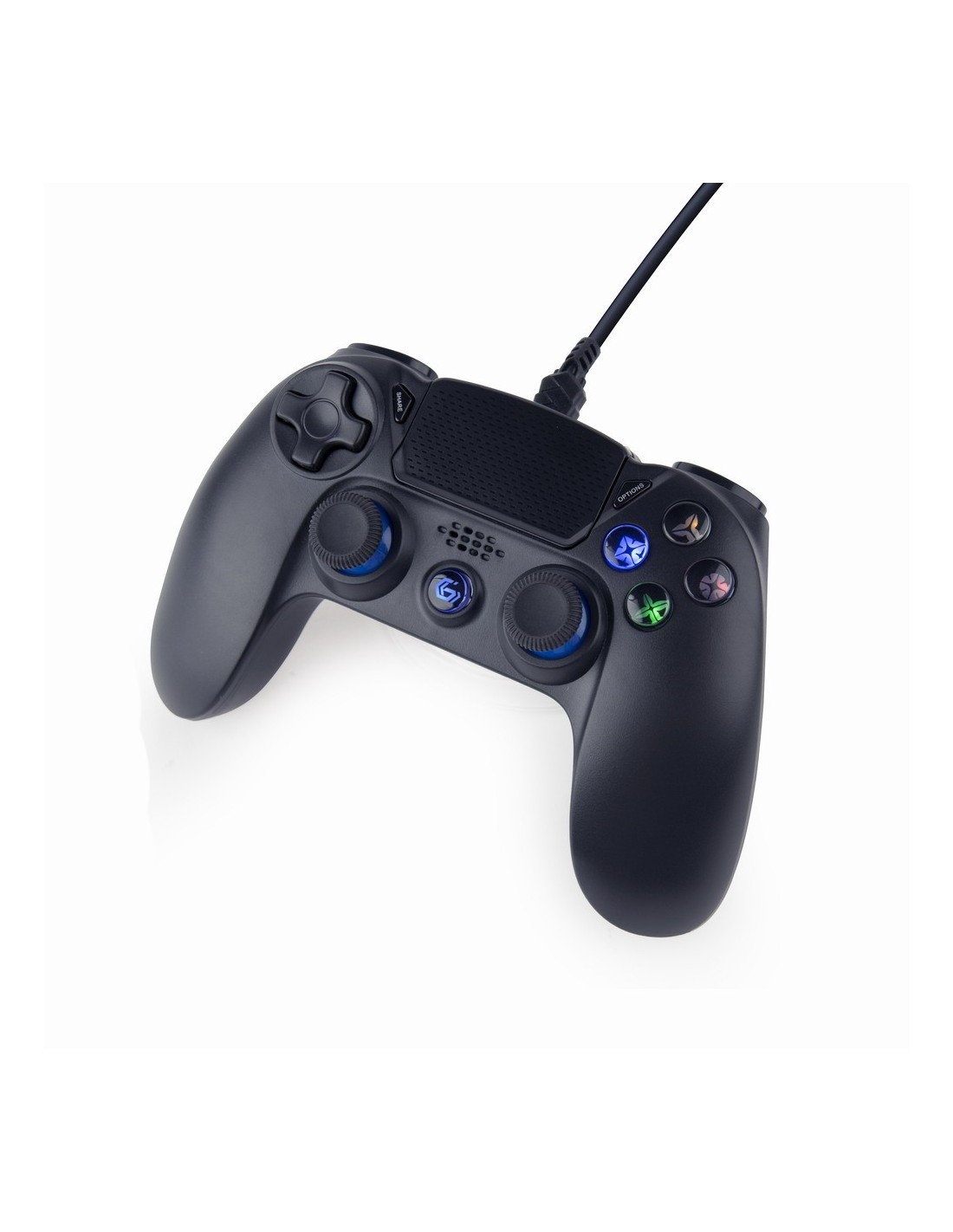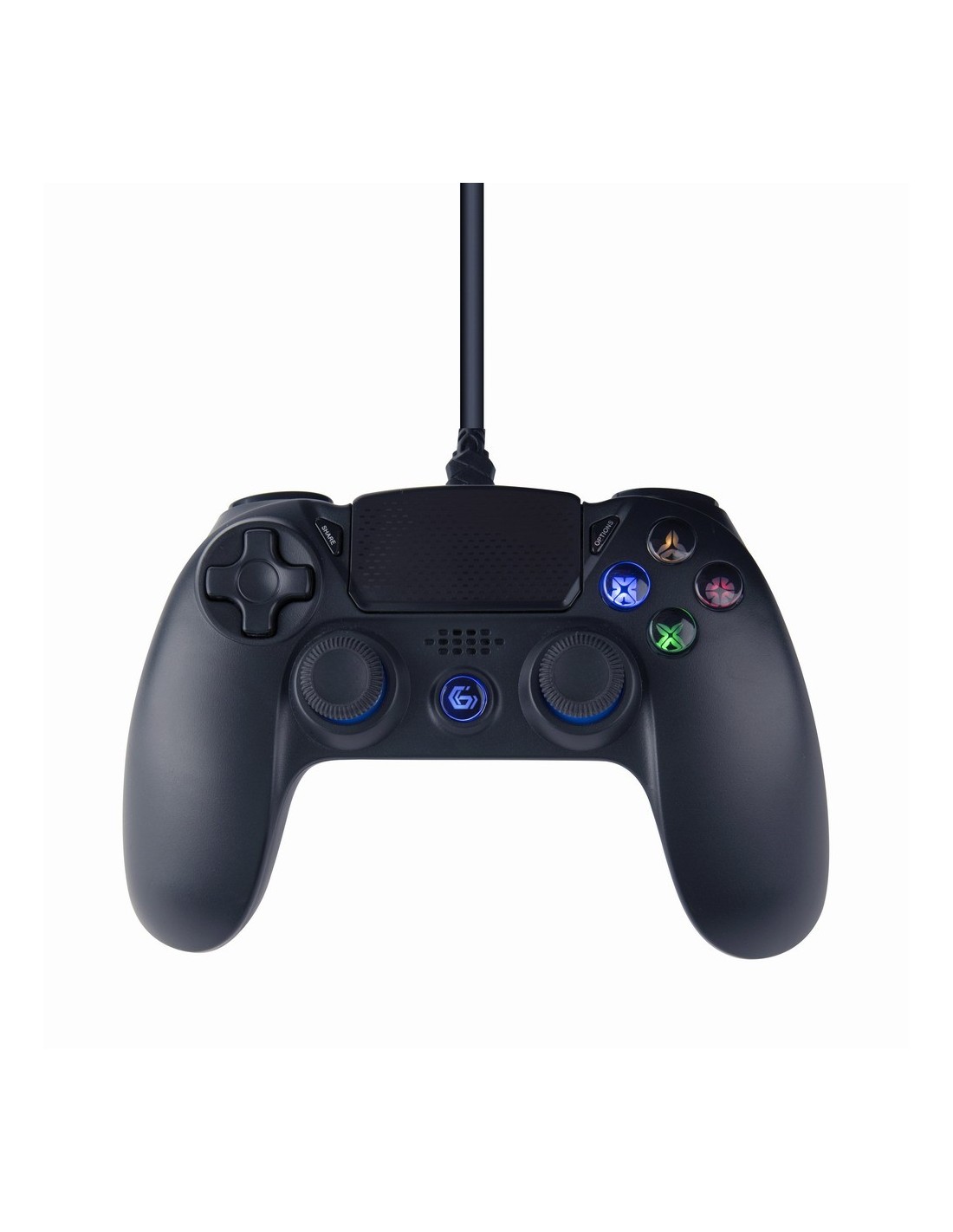Gembird JPD-PS4U-01. Tipo de dispositivo: Gamepad, Plataformas de juego soportadas: PC, PlayStation 4, Botones de función control para gaming: Cruceta. Tecnología de conectividad: Alámbrico, Interfaz del dispositivo: USB. Color del producto: Negro, Longitud de cable: 3 m, Certificación: CE. Fuente de energía: Cable. Ancho: 34 mm, Profundidad: 149 mm, Altura: 64 mm