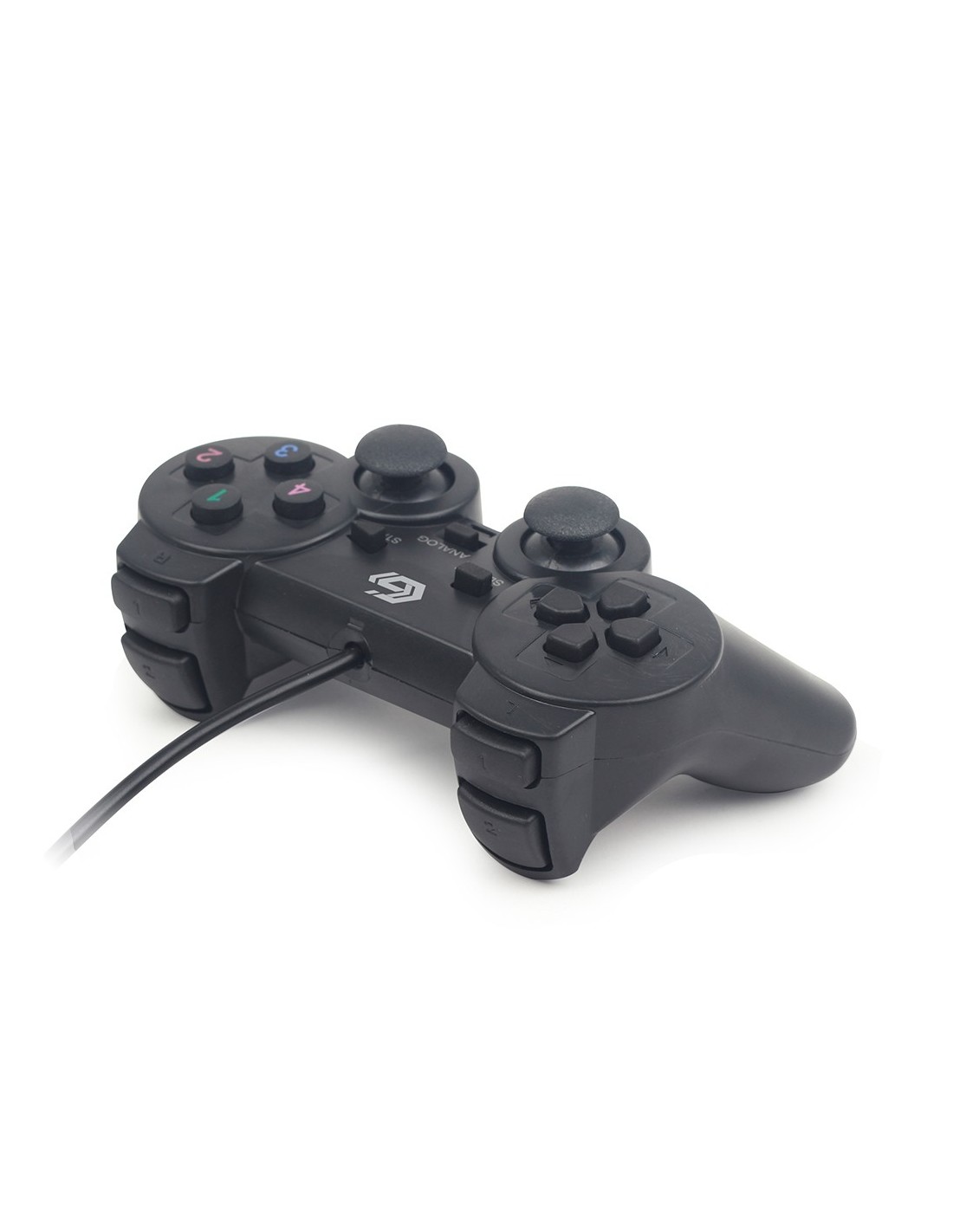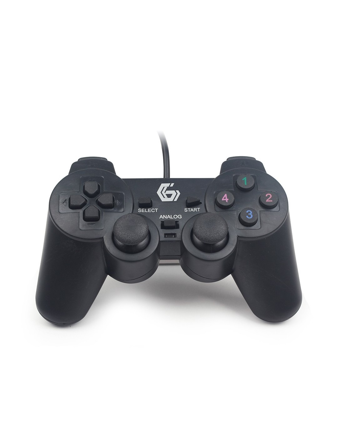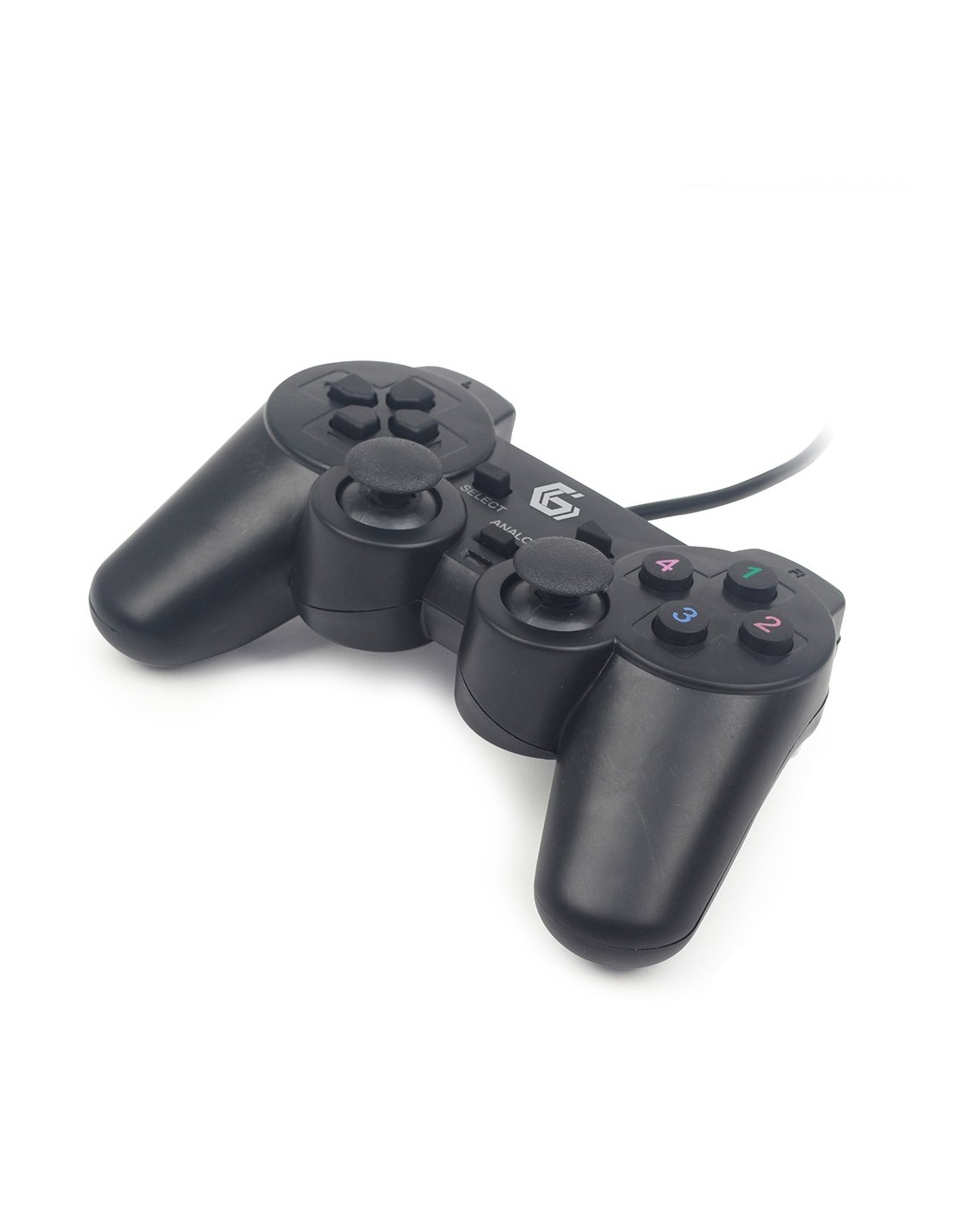 Gembird JPD-UDV-01. Tipo de dispositivo: Gamepad, Plataformas de juego soportadas: PC, Botones de función control para gaming: Cruceta. Tecnología de conectividad: Alámbrico, Interfaz del dispositivo: USB 2.0. Color del producto: Negro, Longitud de cable: 1,8 m. Sistema operativo Windows soportado: Windows 10 Education, Windows 10 Education x64, Windows 10 Enterprise, Windows 10 Enterprise x64,.... Ancho: 80 mm, Profundidad: 165 mm, Altura: 110 mm