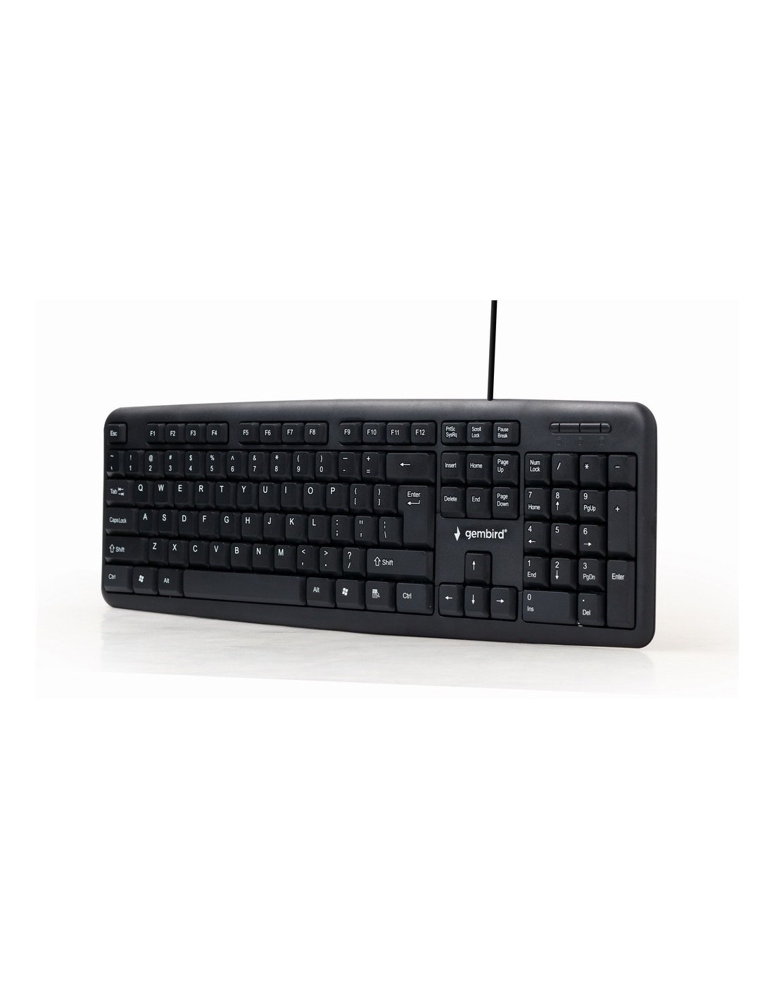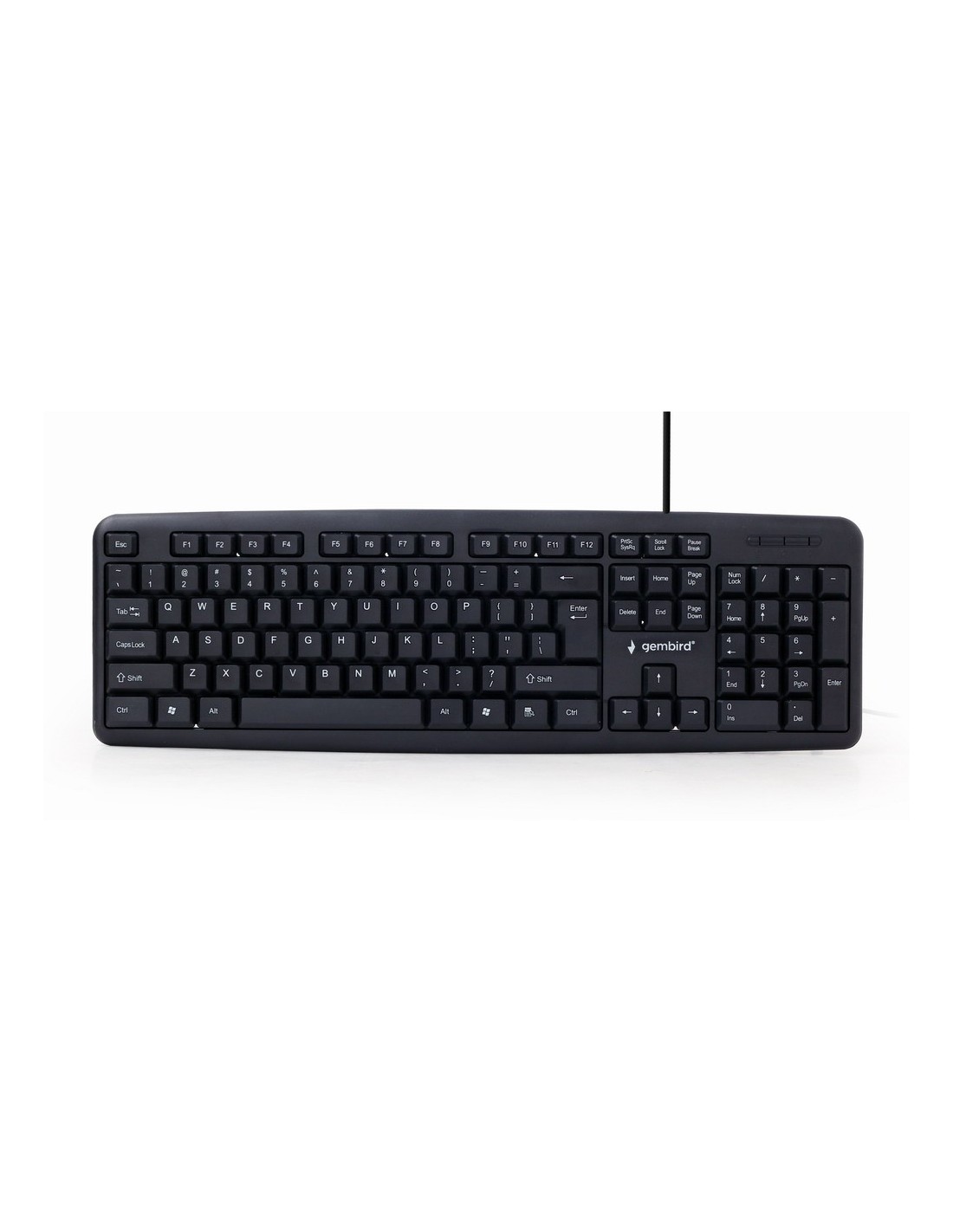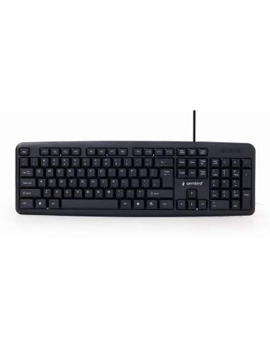 Gembird KB-U-103-PT. Formato del teclado: Completo (100%). Estilo de teclado: Derecho. Tecnología de conectividad: Alámbrico, Interfaz del dispositivo: USB, Interruptor del teclado: Interruptor de membrana, Teclado, cantidad de teclas: 104. Longitud de cable: 1,8 m. Uso recomendado: Oficina. Color del producto: Negro