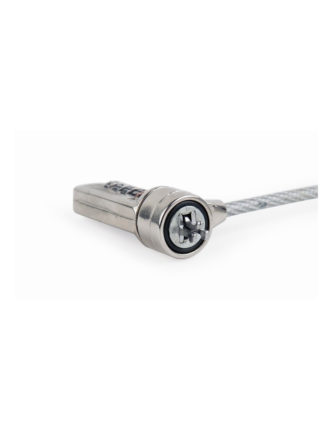 Gembird LK-CL-01. Color del producto: Plata, Tipo de candado: Cerradura con combinación, Material: PVC, Acero, Zinc. Diámetro de cable: 4 mm, Peso: 100 g. Cantidad por paquete: 1 pieza(s), Ancho del paquete: 45 mm, Profundidad del paquete: 185 mm