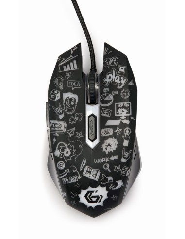 Gembird MUS-6B-GRAFIX-01. Factor de forma: mano derecha. Tecnología de detección de movimientos: Óptico, Interfaz del dispositivo: USB tipo A, Resolución de movimiento: 3600 DPI, Tipo de botones: Botones presionados, Cantidad de botones: 6, Tipo de desplazamiento: Rueda. Iluminación de color: Multi. Fuente de energía: Cable. Color del producto: Negro