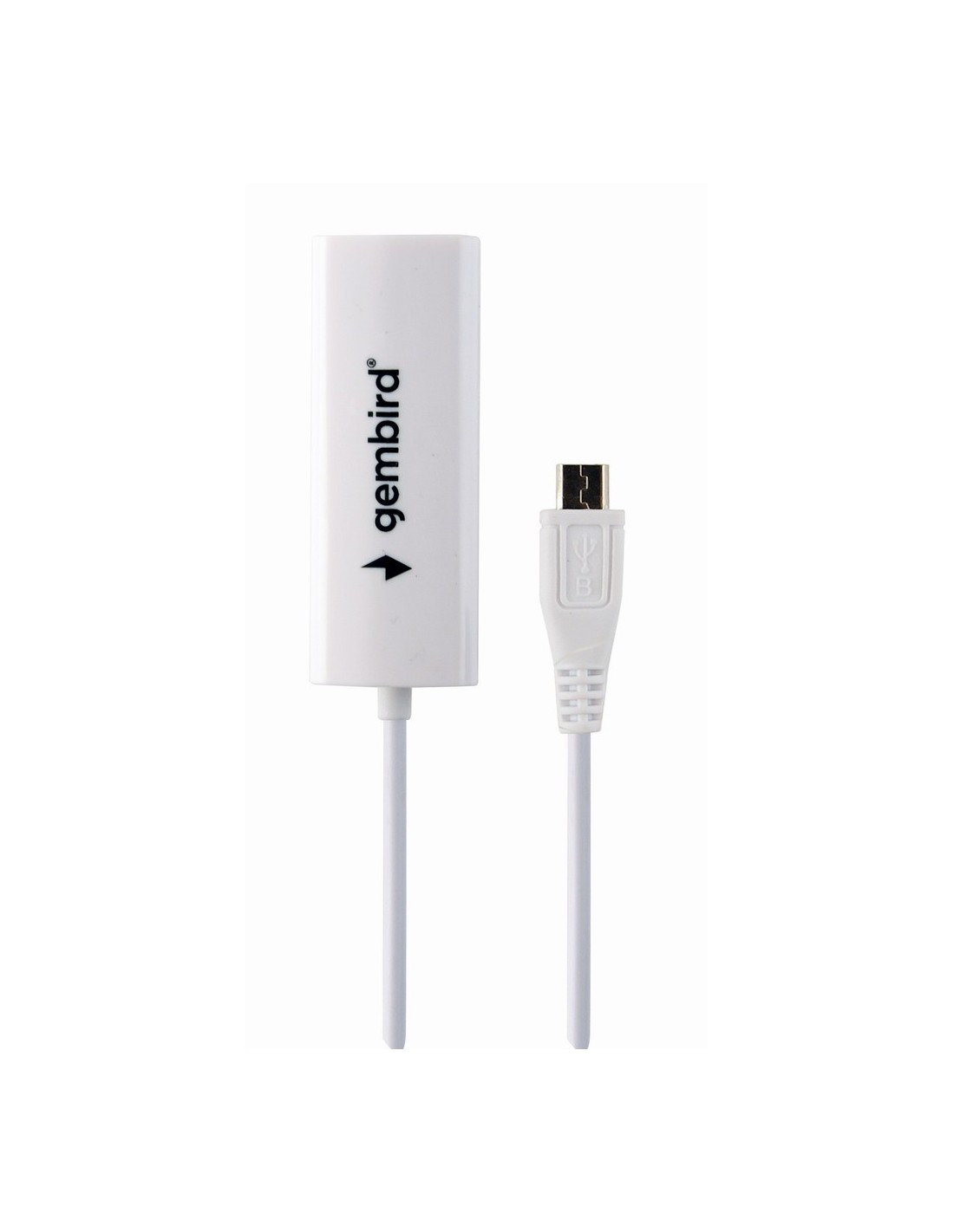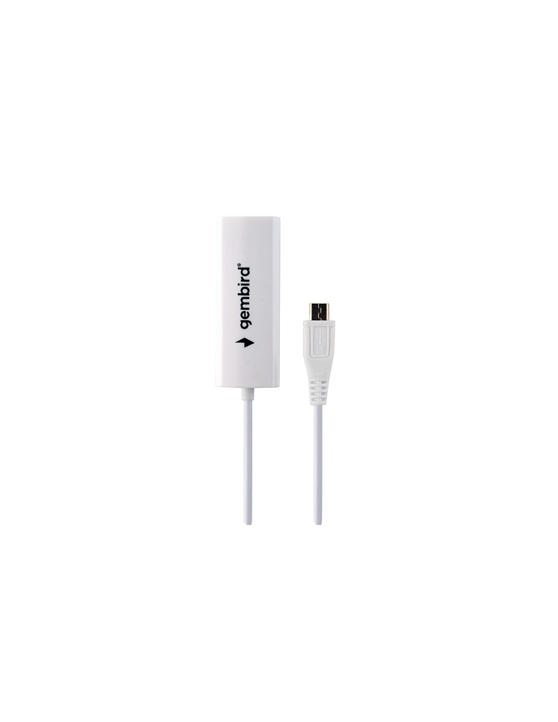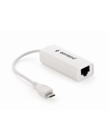 Gembird NIC-MU2-01. Tecnología de conectividad: Alámbrico, Interfaz de host: MicroUSB, Interfaz: Ethernet. Rango máximo de transferencia de datos: 100 Mbit/s. USB con suministro de corriente. Color del producto: Blanco