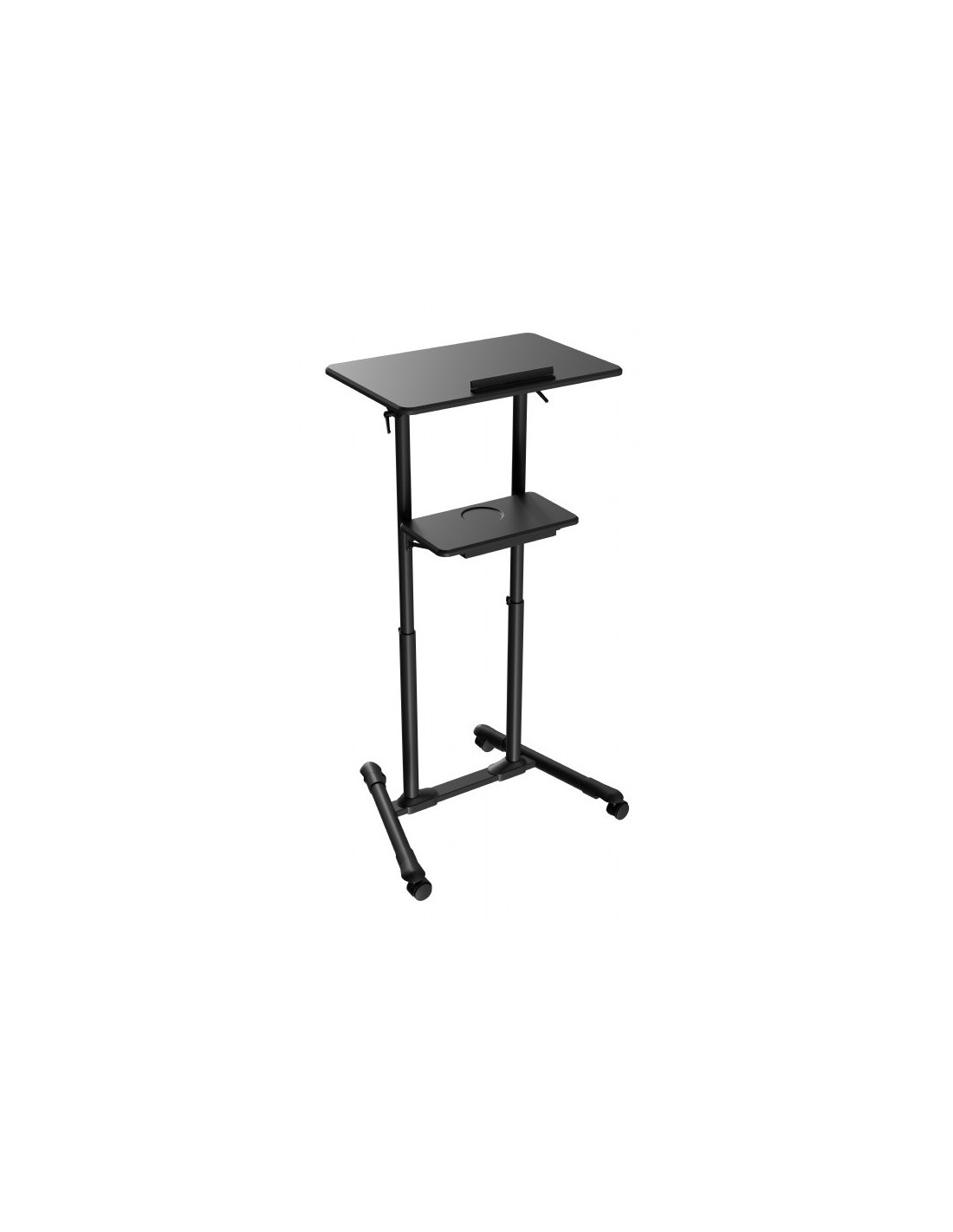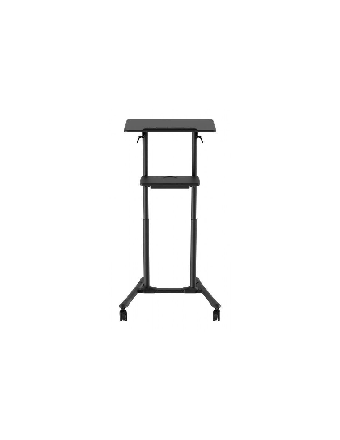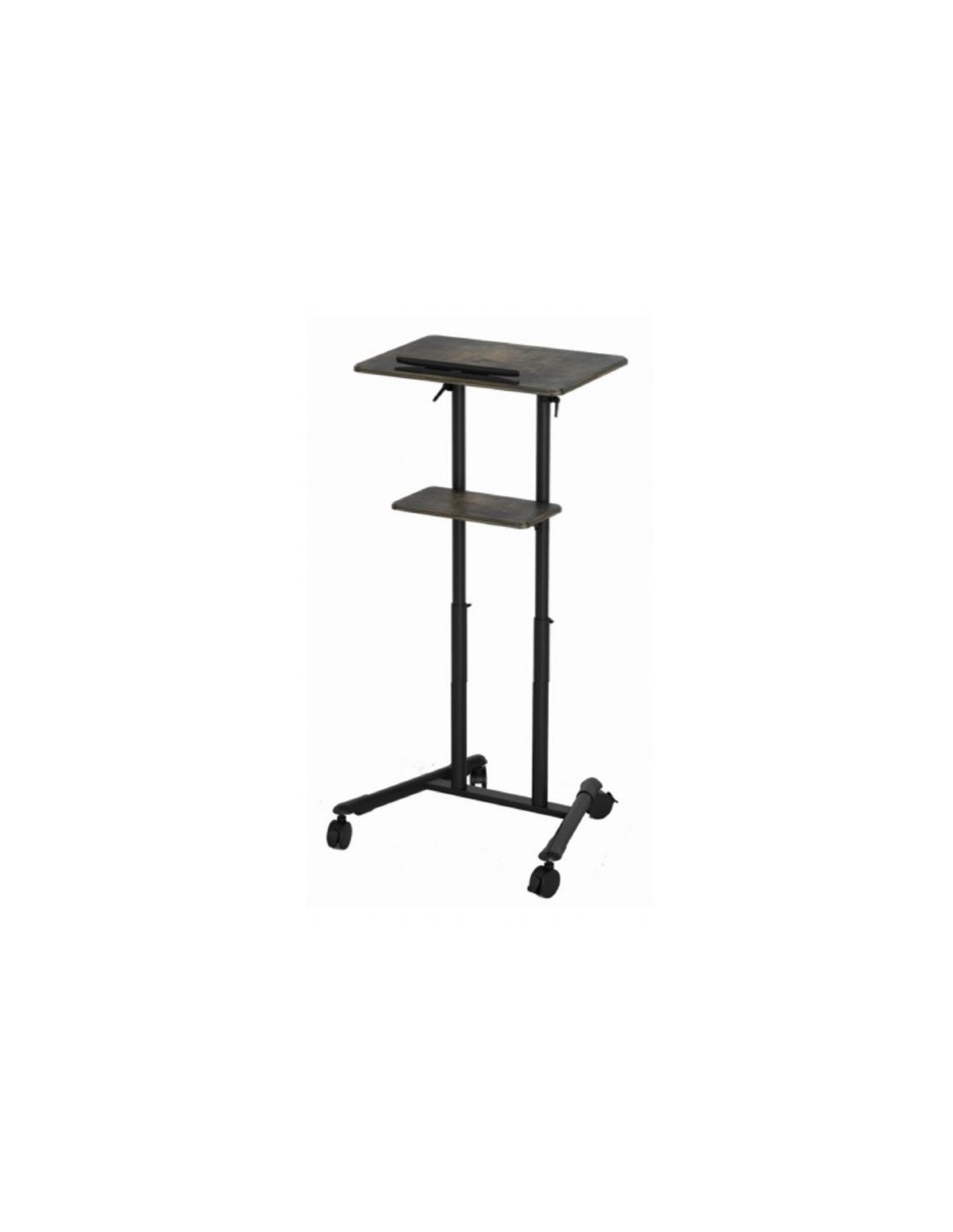 Gembird TVS-DESK-01-BK. Color del producto: Negro, Capacidad máxima de peso: 20 kg, Rango de ajustes de altura: 1110 - 1345 mm. Ancho: 530 mm, Profundidad: 690 mm, Altura: 1345 mm. Ancho del paquete: 620 mm, Profundidad del paquete: 830 mm, Altura del paquete: 210 mm