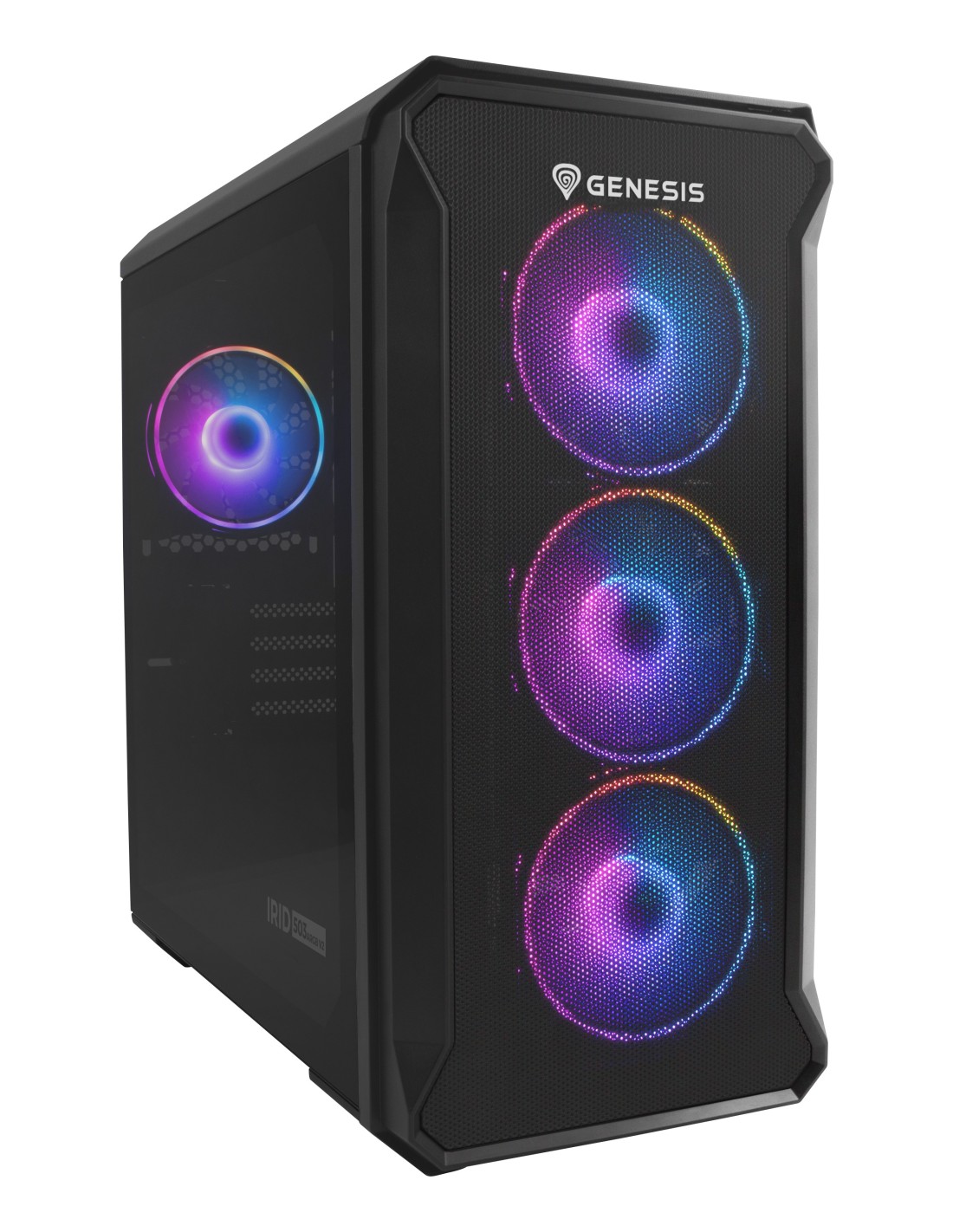 GENESIS Irid 503 ARGB, Micro Torre, PC, Negro, Transparente, micro ATX, Mini-ITX, Acrilonitrilo butadieno estireno (ABS), Acero, Vidrio templado, Juego