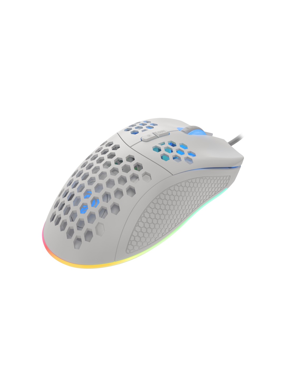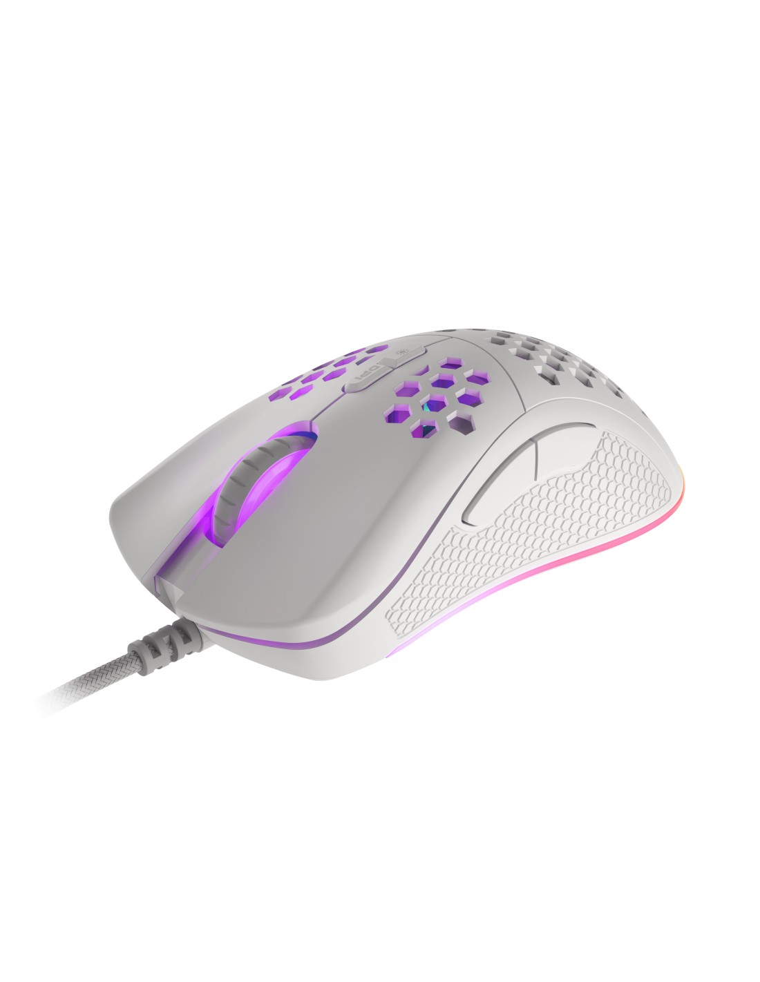GENESIS Krypton 555. Factor de forma: mano derecha. Tecnología de detección de movimientos: Óptico, Interfaz del dispositivo: USB tipo A, Resolución de movimiento: 8000 DPI, Velocidad de cuadro: 8000 pps, Tipo de botones: Botones presionados, Cantidad de botones: 7, Tipo de desplazamiento: Rueda, Aceleración (máx.): 35 G. Iluminación de color: Multi. Fuente de energía: Cable. Color del producto: Blanco