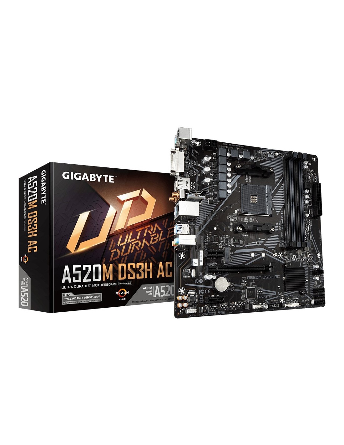 GIGABYTE A520M DS3H AC Placa Base - Procesadores AMD Ryzen Serie 5000, VRM de 5+3 fases, hasta 4733 MHz DDR5 (OC), 1xPCIe 3.0 M.2, LAN GbE, WIFI 5, USB 3.2 Gen 1, AMD, Zócalo AM4, AMD Ryzen 3000 Series, AMD Ryzen Threadripper 3000 Series, AMD Ryzen Threadripper PRO 3000 WX-Series, Zócalo AM4, DDR4-SDRAM, 128 GB
