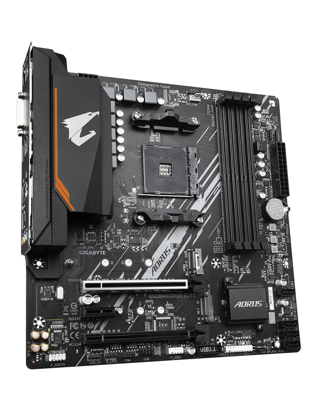 GIGABYTE B550M AORUS ELITE Placa base - Procesadores AMD Ryzen 5000, VRM de 5+3 fases, hasta 4733 MHz DDR4, 1xPCIe 4.0 + 1xPCIe 3.0 M.2, LAN 1GbE, USB 3.2 Gen 1. Fabricante de procesador: AMD, Socket de procesador: Zócalo AM4, Procesador compatible: AMD Ryzen 3000 Series, AMD Ryzen 4000 Series, AMD Ryzen 5000 Series. tipos de memoria compatibles: DDR4-SDRAM, Memoria interna máxima: 128 GB, Tipo de ranuras de memoria: DIMM. Interfaces de disco de almacenamiento soportados: M.2, SATA III, Tipos de unidades de almacenamiento admitidas: HDD & SSD, Niveles RAID: 0, 1, 10. Máxima resolución: 4096 x 2160 Pixeles. Tipo de interfaz ethernet: Gigabit Ethernet, Controlador LAN: Realtek RTL8111H