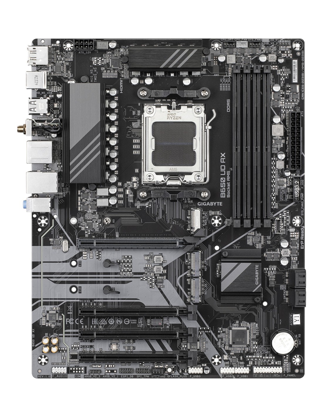 GIGABYTE B650 UD AX Placa Base - Compatible con CPUs AMD Ryzen Serie 9000, VRM de 6+2+2 fases, hasta 7600MHz DDR5 (OC), 1x PCIe 5.0 + 2x PCIe 4.0 M.2, LAN GbE, Wi-Fi 6, USB 3.2 Gen 2. Fabricante de procesador: AMD, Socket de procesador: Zócalo AM5, Procesador compatible: AMD Ryzen 7000 Series, AMD Ryzen 8000 Series, AMD Ryzen 9000 Series. tipos de memoria compatibles: DDR5-SDRAM, Memoria interna máxima: 256 GB, Tipo de ranuras de memoria: DIMM. Interfaces de disco de almacenamiento soportados: M.2, SATA III, Tipos de unidades de almacenamiento admitidas: HDD & SSD, Niveles RAID: 0, 1, 10. Máxima resolución: 4096 x 2160 Pixeles. Tipo de interfaz ethernet: Gigabit Ethernet, Controlador LAN: Realtek RTL8111H, Estándar Wi-Fi: Wi-Fi 6 (802.11ax)