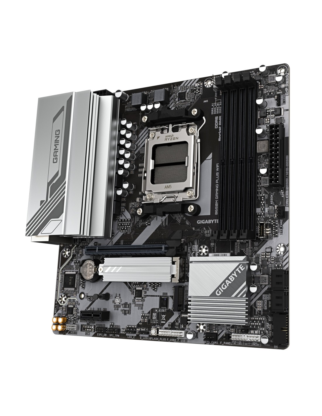 GIGABYTE B650M GAMING PLUS WIFI Placa base - Procesadores AMD Ryzen 9000, VRM de 5+2+2 fases, hasta 8000 MHz DDR5, 2xPCIe 4.0 M.2, LAN 2.5GbE, WIFI 6E, USB 3.2 Gen 1, AMD, Zócalo AM5, AMD Ryzen 7000 Series, AMD Ryzen 8000 Series, AMD Ryzen 9000 Series, Zócalo AM5, DDR5-SDRAM, 256 GB