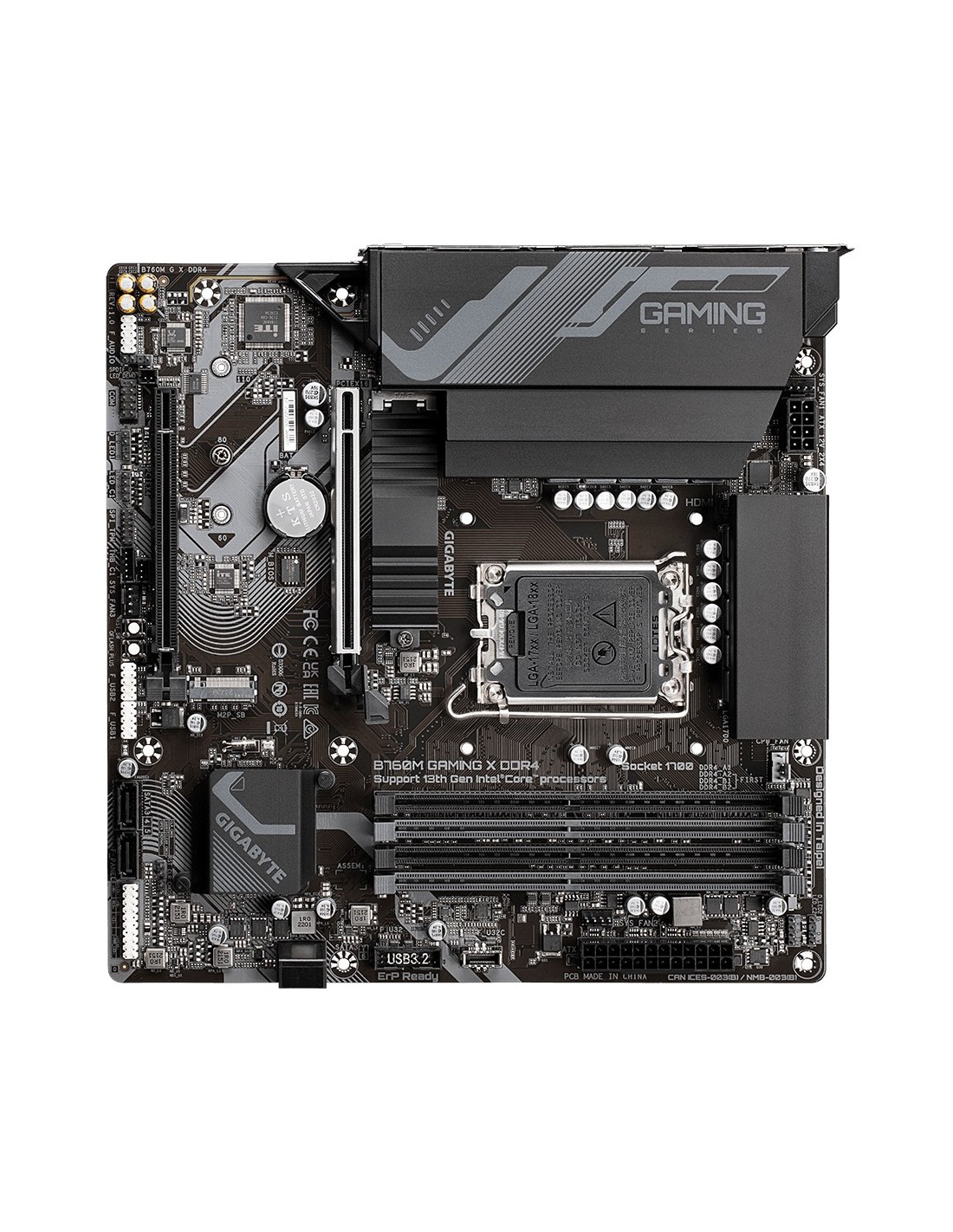 GIGABYTE B760M GAMING X DDR4 Placa base - Soporta CPUs Intel Core de 14ª generación, VRM digital de 8+1+1 fases, hasta 5333MHz DDR4 (OC), 2xPCIe 4.0 M.2, LAN 2.5GbE, USB 3.2 Gen2. Fabricante de procesador: Intel, Socket de procesador: LGA 1700, Procesador compatible: Intel® Celeron®, Intel® Core™ i3, Intel® Core™ i5, Intel® Core™ i7, Intel® Core™ i9,.... tipos de memoria compatibles: DDR4-SDRAM, Memoria interna máxima: 128 GB, Tipo de ranuras de memoria: DIMM. Interfaces de disco de almacenamiento soportados: M.2, SATA III, Tipos de unidades de almacenamiento admitidas: HDD & SSD, Niveles RAID: 0, 1, 5, 10. Máxima resolución: 4096 x 2304 Pixeles. Tipo de interfaz ethernet: 2.5 Gigabit Ethernet