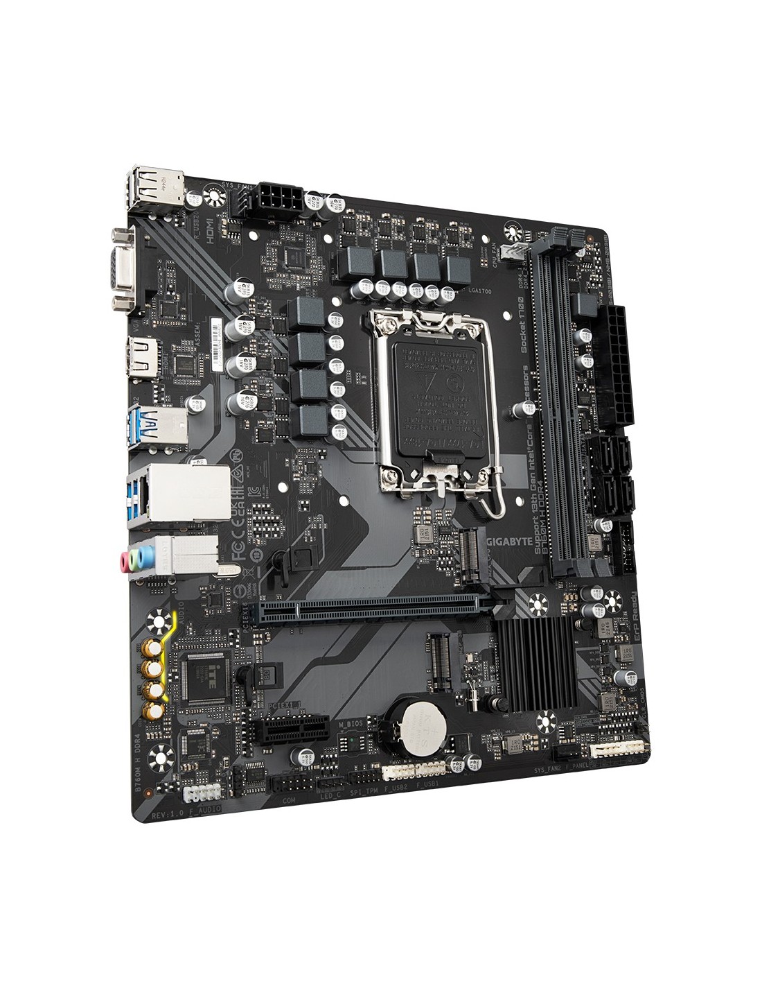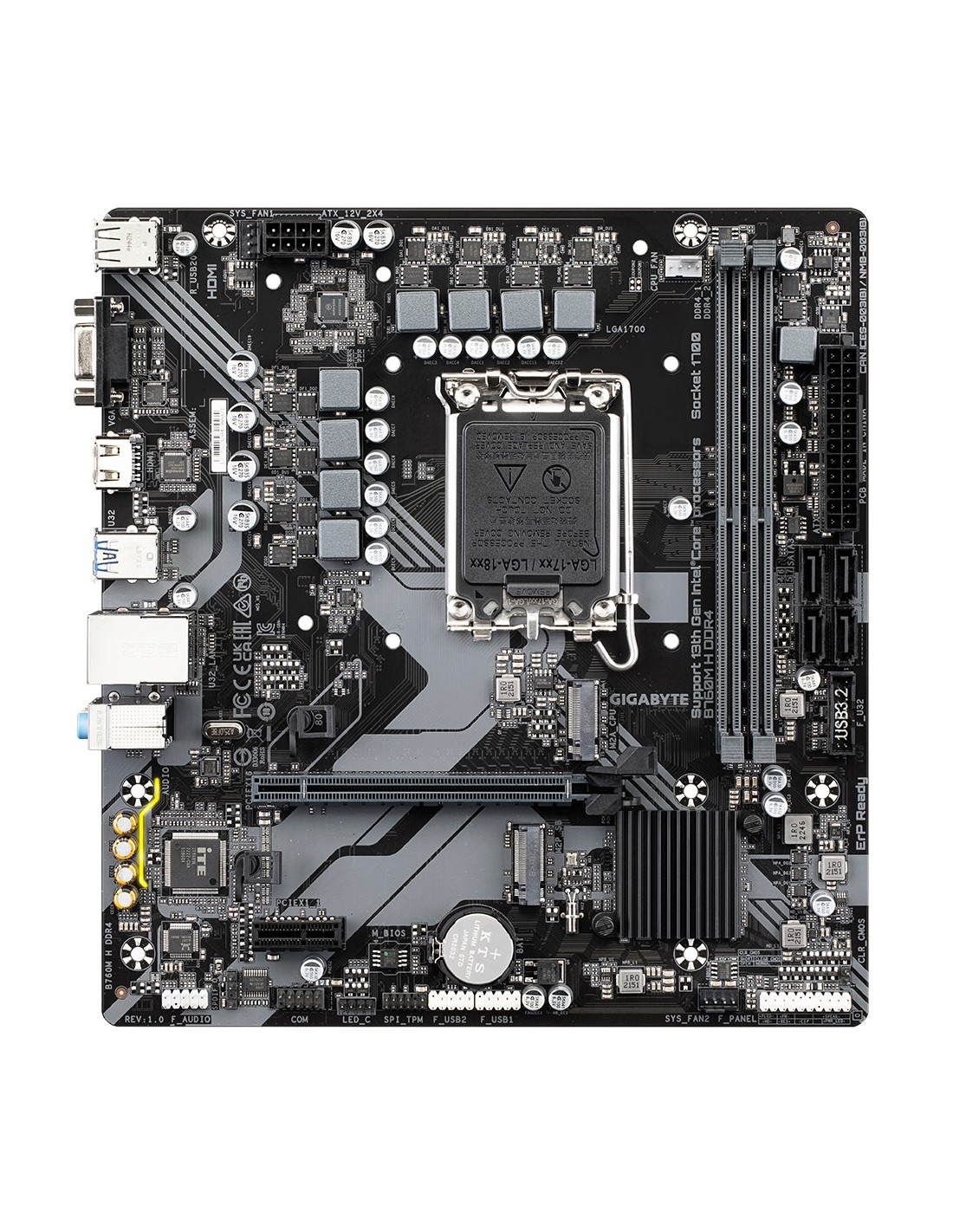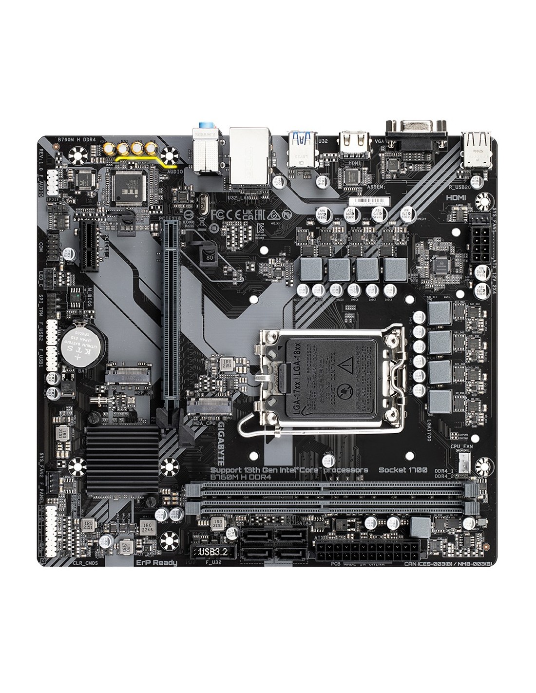 GIGABYTE B760M H DDR4 Placa base - Soporta CPUs Intel Core de 14ª generación, VRM digital de 6+1+1 fases, hasta 3200MHz DDR4 (OC), 2xPCIe 4.0 M.2, GbE LAN, USB 3.2 Gen1, Intel, LGA 1700, Intel® Celeron®, Intel® Pentium® Gold, LGA 1700, 64 GB, DDR4-SDRAM