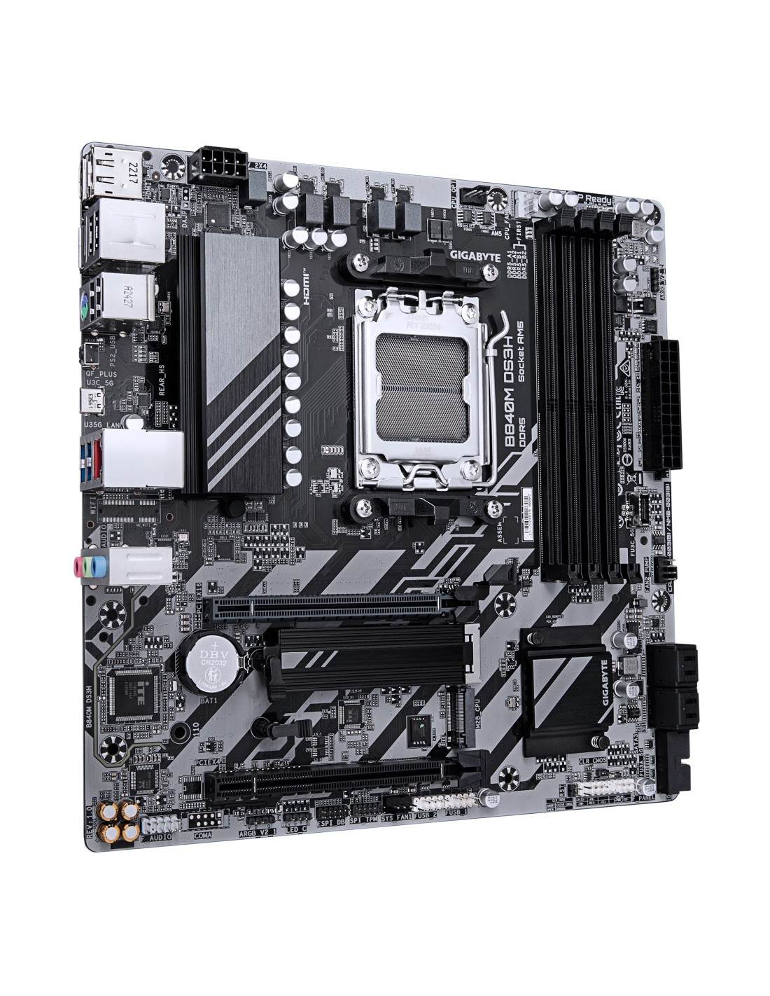 GIGABYTE B840M DS3H Placa base - Procesadores AMD Ryzen 9000, VRM de 8+2+2 fases, hasta 8200 MHz DDR5, 2xPCIe 4.0 M.2, LAN 2.5GbE, USB 3.2 Gen 1, AMD, Zócalo AM5, AMD Ryzen 7000 Series, AMD Ryzen 8000 Series, AMD Ryzen 9000 Series, Zócalo AM5, DDR5-SDRAM, 256 GB