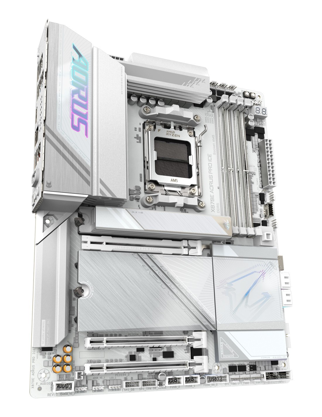 GIGABYTE X870E AORUS PRO ICE Placa Base - Soporta CPUs AMD Ryzen 9000, 16+2+2 Fases VRM Digital, hasta 8000MHz DDR5 (OC), 3xPCIe 5.0 + 1xPCIe 4.0, Wi-Fi 7, 2.5GbE LAN, USB 4, AMD, Zócalo AM5, AMD Ryzen 7000 Series, AMD Ryzen 8000 Series, AMD Ryzen 9000 Series, Zócalo AM5, 256 GB, DDR5-SDRAM
