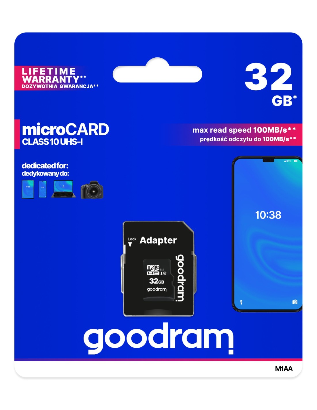 Las tarjeta de memoria microCARD con la interfaz UHS-I sirven perfectamente para su uso en los dispositivos de última generación. La interfaz ultrarrápida UHS-I permitirá aprovechar plenamente las prestaciones de los teléfonos inteligentes y tabletas modernas, y el adaptador M1AA incluido en el suministro permitirá utilizar la tarjeta micro también en otros dispositivos provistos de un puerto para tarjetas SD.